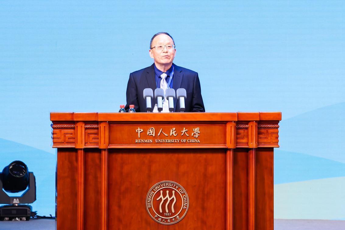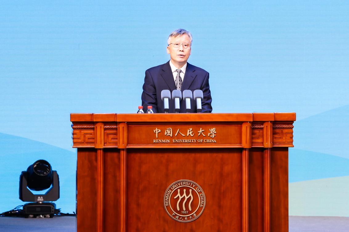 圖為中國人民大學(xué)副校長鄭新業(yè)在論壇主會場開幕式上致辭。