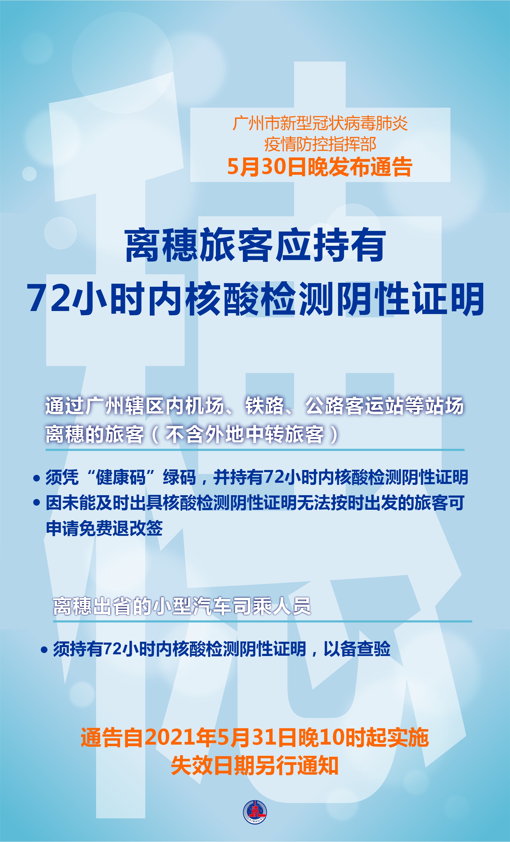 海報:離穗旅客應持有72小時內核酸檢測陰性證明