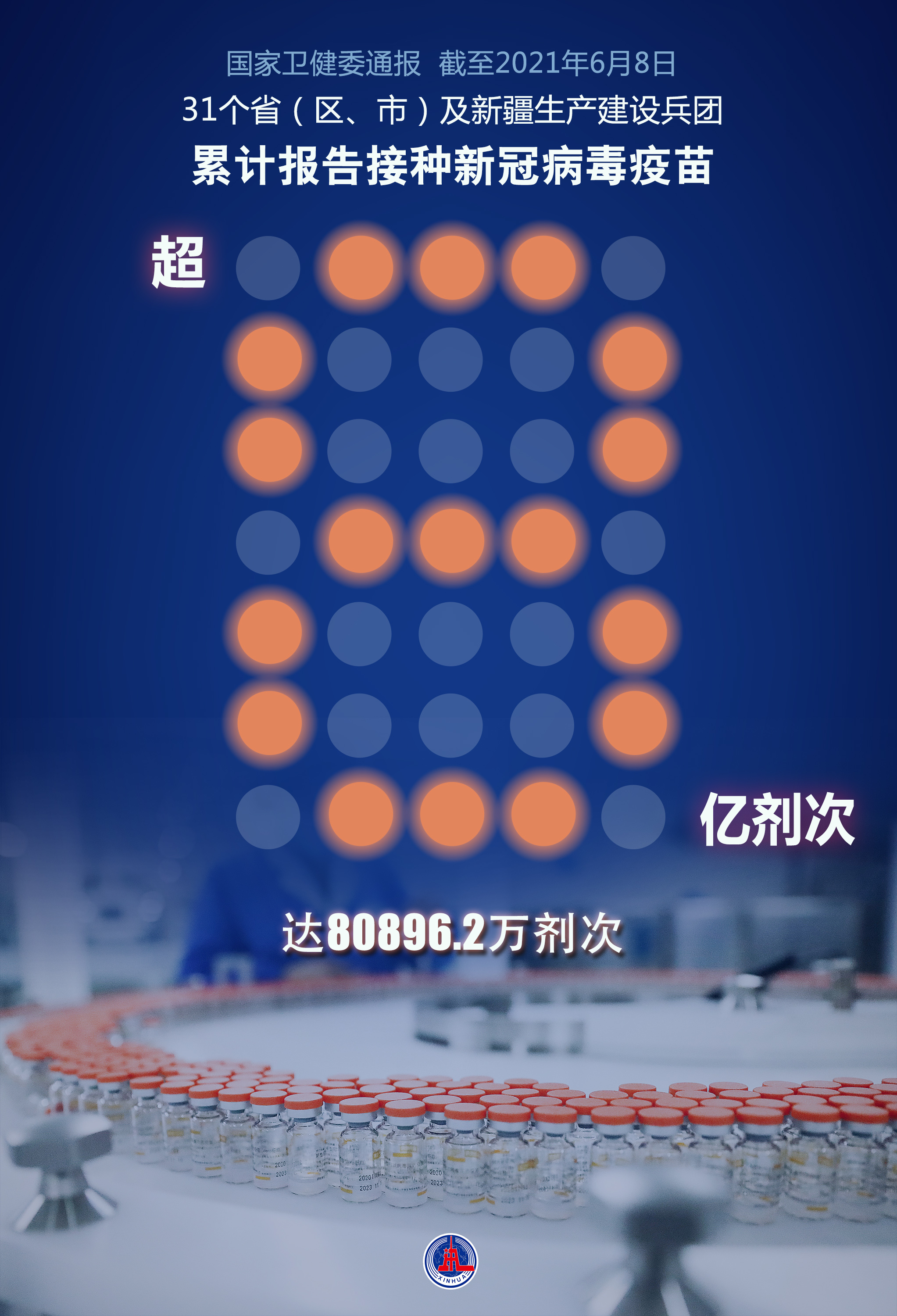 海報:31個省(區(qū)、市)及新疆生產(chǎn)建設(shè)兵團(tuán)累計報告接種新冠病毒疫苗超8億劑次