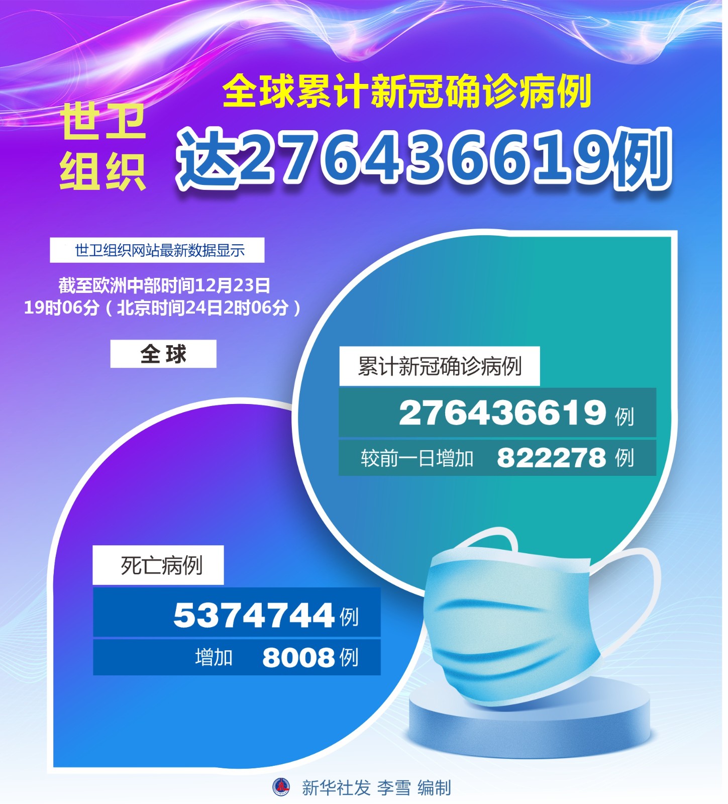 世界衛(wèi)生組織12月23日公布的最新數(shù)據(jù)顯示,全球累計新冠確診病例達(dá)276436619例。