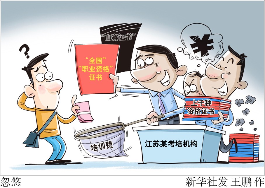 “新華視點(diǎn)”記者實(shí)地走訪發(fā)現(xiàn),該公司僅有2間辦公室,20多人辦公,卻開發(fā)了1730個(gè)職業(yè)資格考試項(xiàng)目,宣稱已發(fā)證128萬(wàn)張。