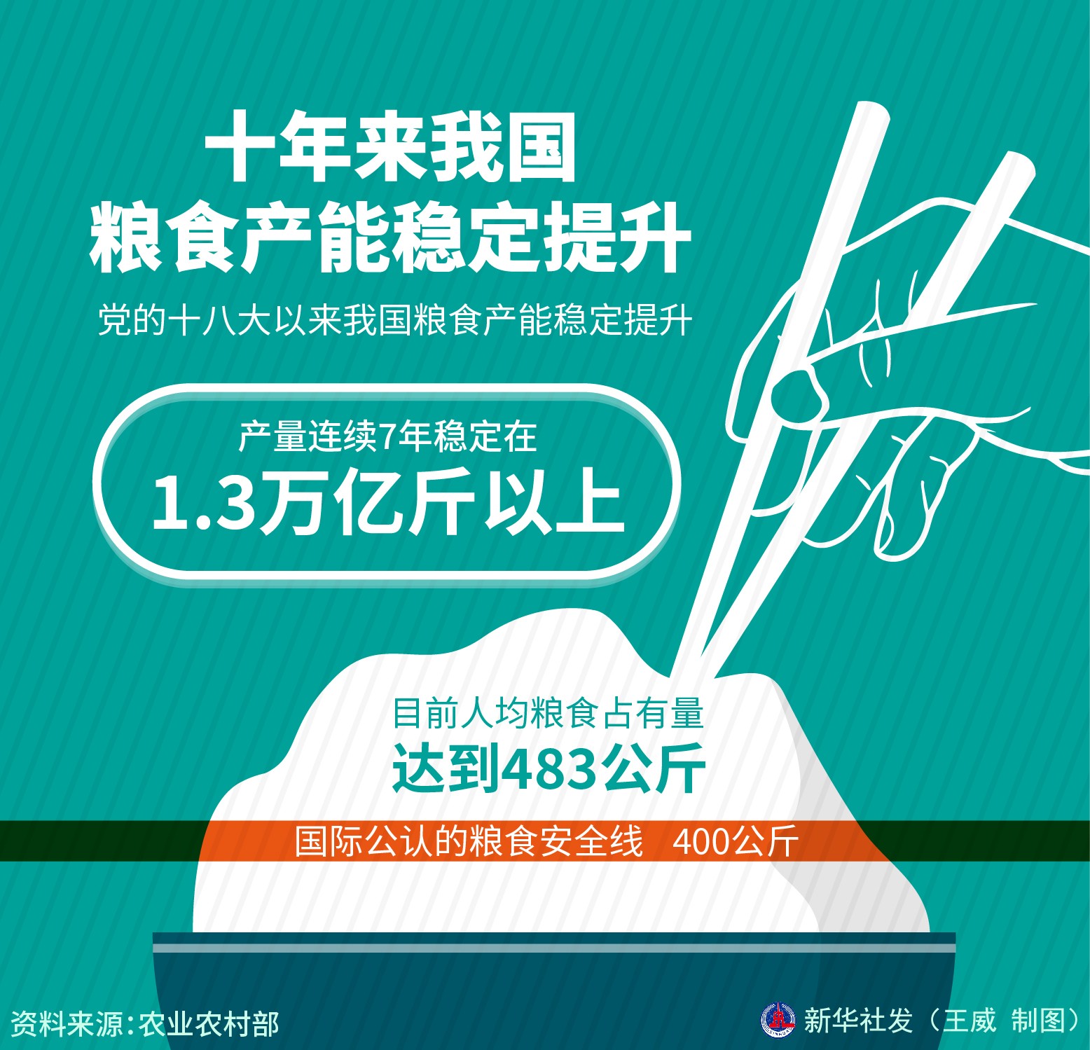農(nóng)業(yè)農(nóng)村部副部長(zhǎng)鄧小剛6月27日表示,黨的十八大以來(lái)我國(guó)糧食產(chǎn)能穩(wěn)定提升,產(chǎn)量連續(xù)7年穩(wěn)定在1.3萬(wàn)億斤以上。目前人均糧食占有量達(dá)到483公斤,高于國(guó)際公認(rèn)的400公斤糧食安全線(xiàn)。
