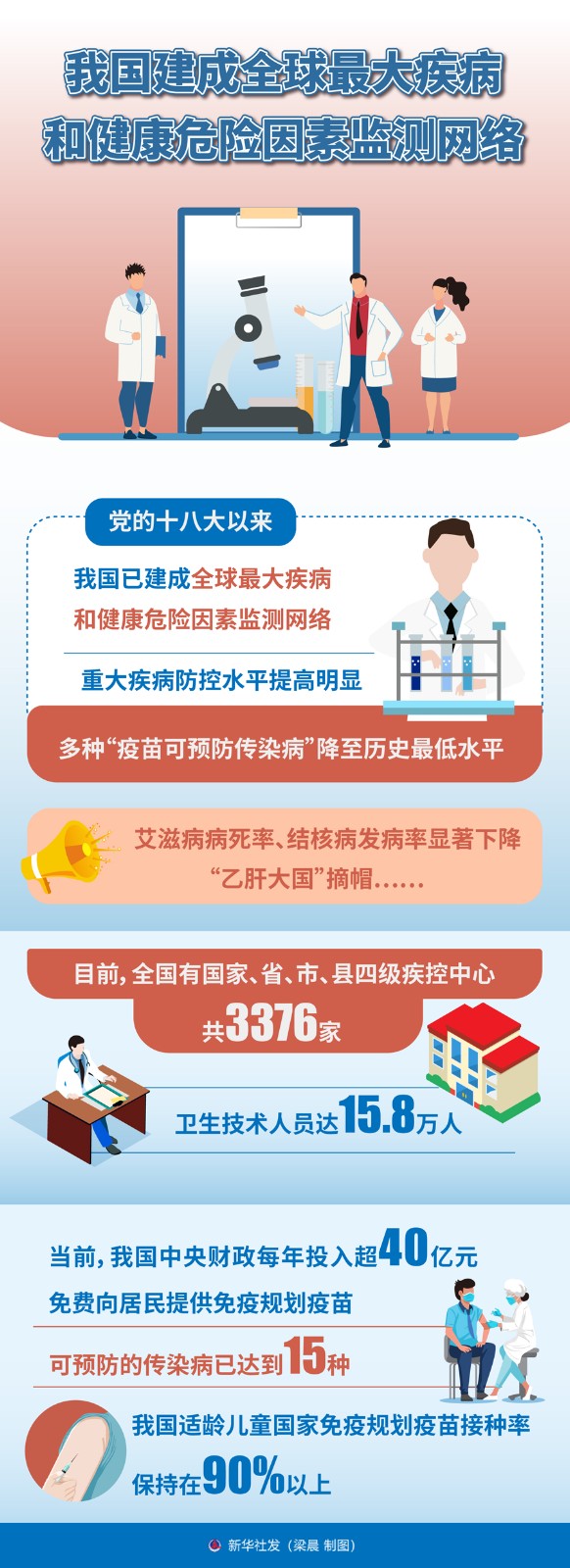 新華社記者6月17日從國(guó)家衛(wèi)生健康委新聞發(fā)布會(huì)上了解到,疾病預(yù)防控制事關(guān)人民生命健康,事關(guān)公共衛(wèi)生安全。一組數(shù)據(jù)顯示,黨的十八大以來(lái),我國(guó)已建成全球最大疾病和健康危險(xiǎn)因素監(jiān)測(cè)網(wǎng)絡(luò),重大疾病防控水平提高明顯,多種“疫苗可預(yù)防傳染病”降至歷史最低水平,艾滋病病死率、結(jié)核病發(fā)病率顯著下降,“乙肝大國(guó)”摘帽……