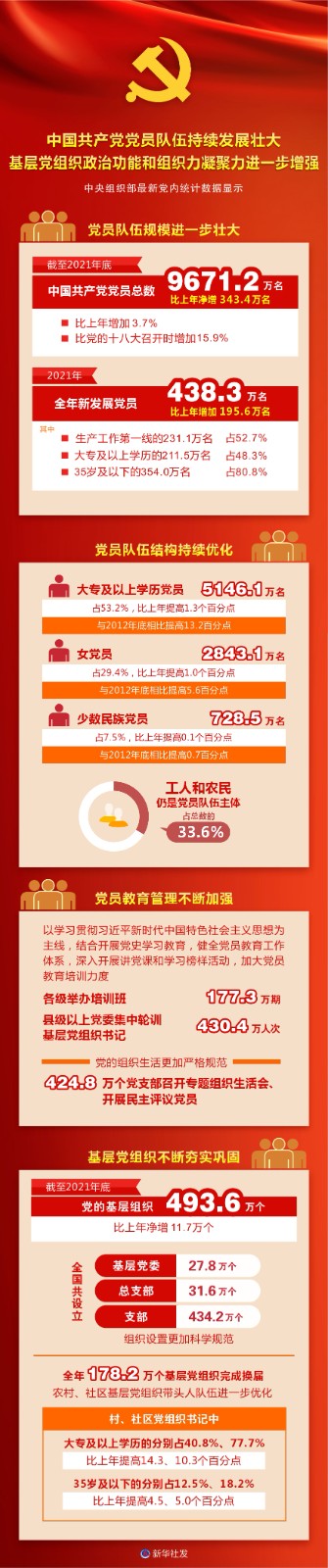 圖表:中國共產(chǎn)黨黨員隊伍持續(xù)發(fā)展壯大 基層黨組織政治功能和組織力凝聚力進一步增強