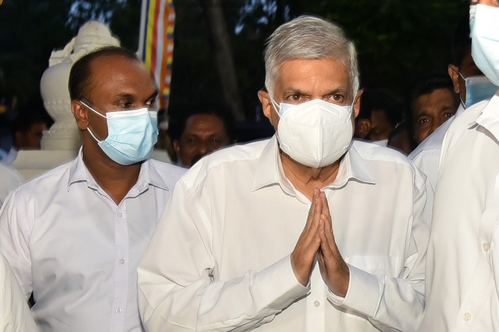 7月20日,在斯里蘭卡首都科倫坡,斯里蘭卡新當(dāng)選總統(tǒng)維克拉馬辛哈(右)出席當(dāng)?shù)氐囊粓龌顒?dòng)。