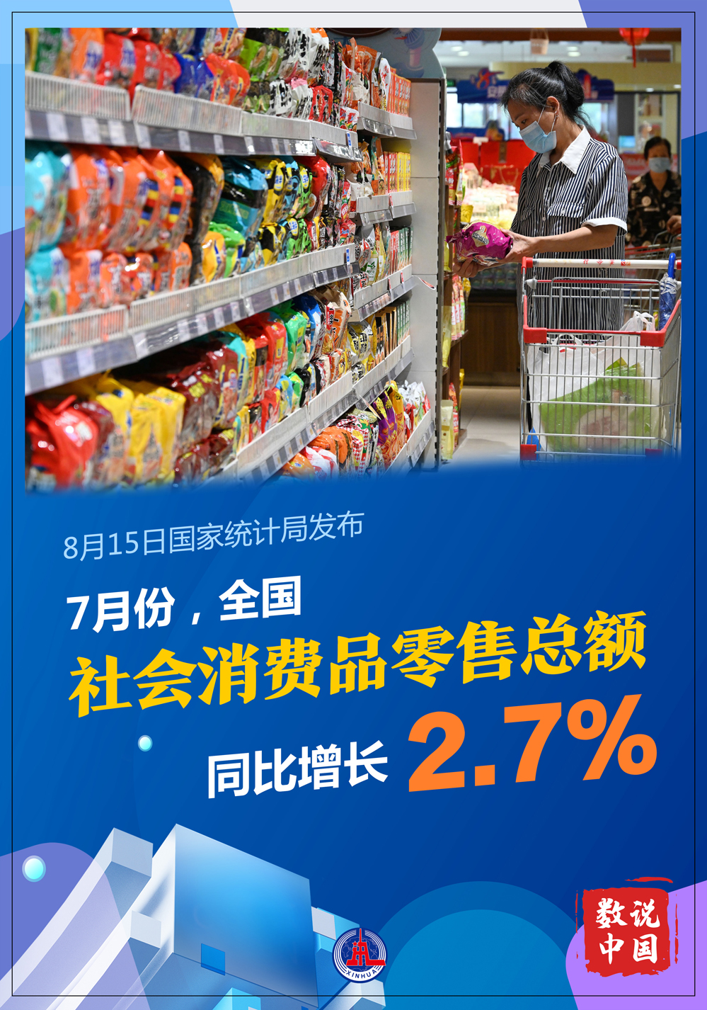 國家統(tǒng)計(jì)局8月15日發(fā)布數(shù)據(jù)顯示,7月份,社會消費(fèi)品零售總額同比增長2.7%,比上月回落0.4個(gè)百分點(diǎn);環(huán)比增長0.27%。