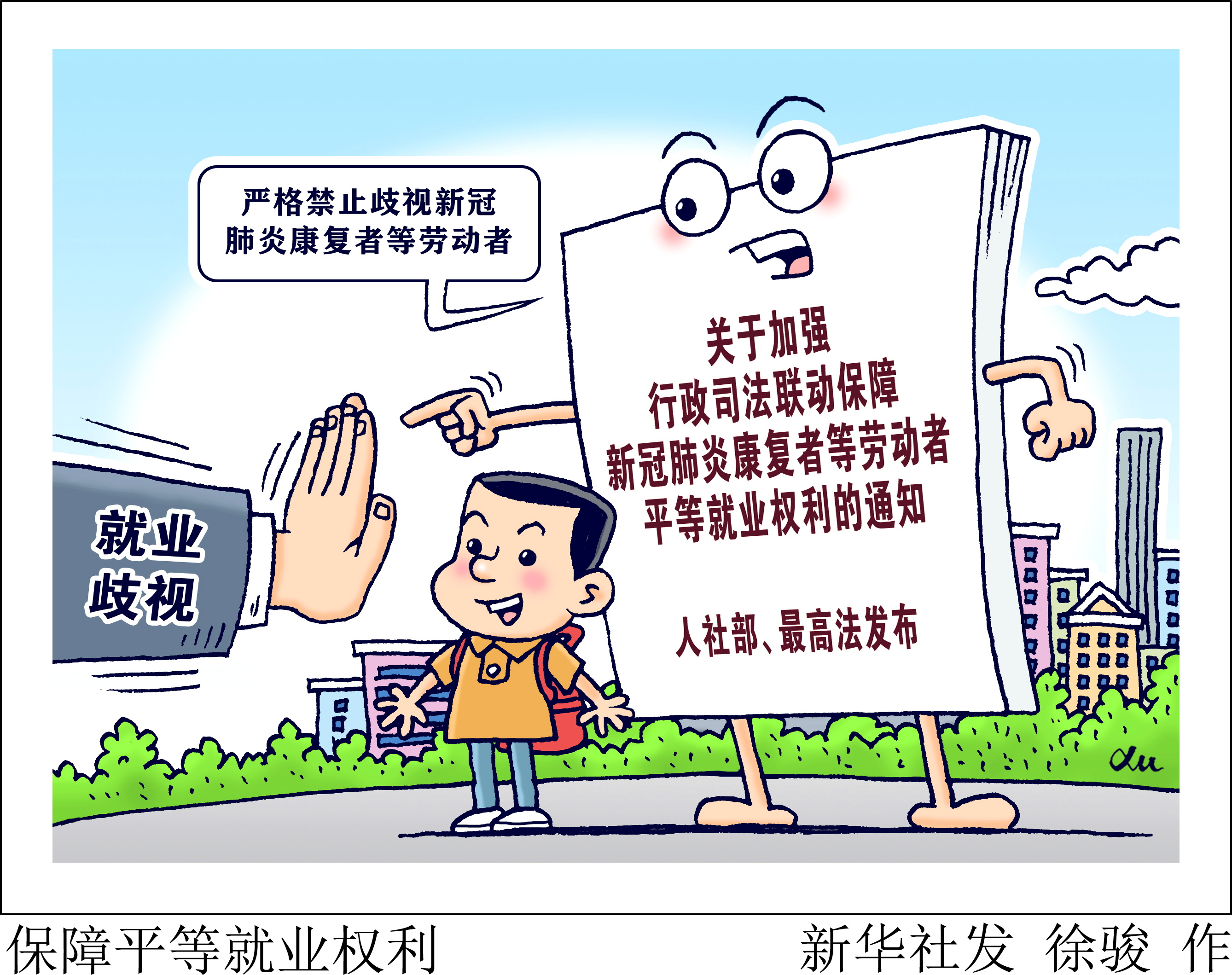 人力資源和社會保障部、最高人民法院8月16日發(fā)布“關(guān)于加強(qiáng)行政司法聯(lián)動保障新冠肺炎康復(fù)者等勞動者平等就業(yè)權(quán)利的通知”,再次重申嚴(yán)格禁止歧視新冠肺炎康復(fù)者等勞動者,并就加強(qiáng)就業(yè)歧視案件審理工作作出部署。