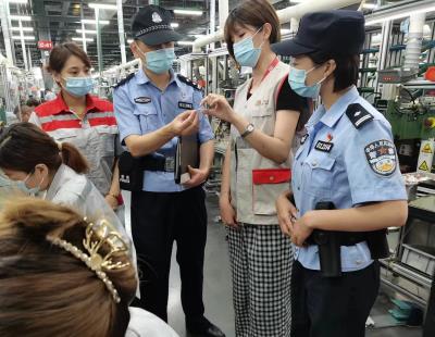 圖為8月1日,民警正在走訪轄區(qū)電氣廠。
