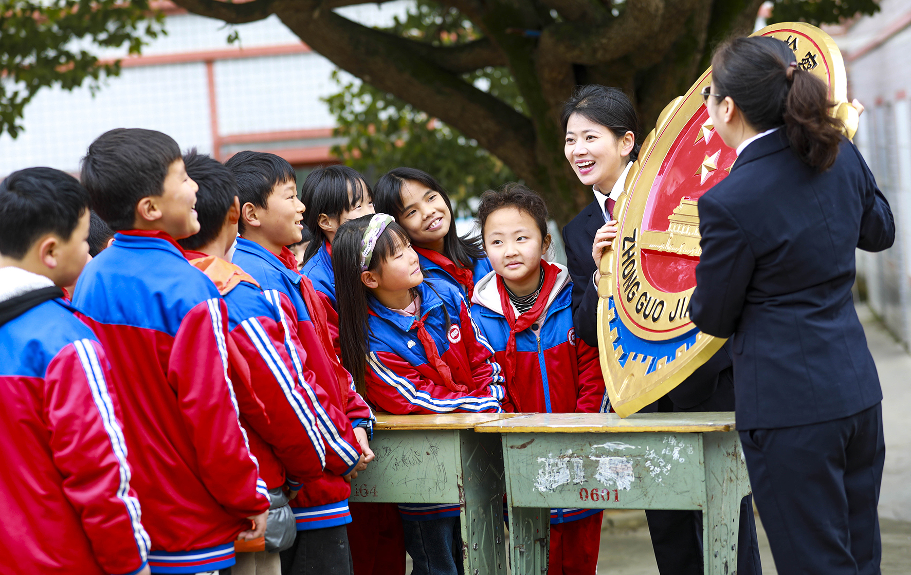 12月4日,安徽省含山縣司法局普法志愿者在姚廟中心學(xué)校向小學(xué)生宣講憲法知識。