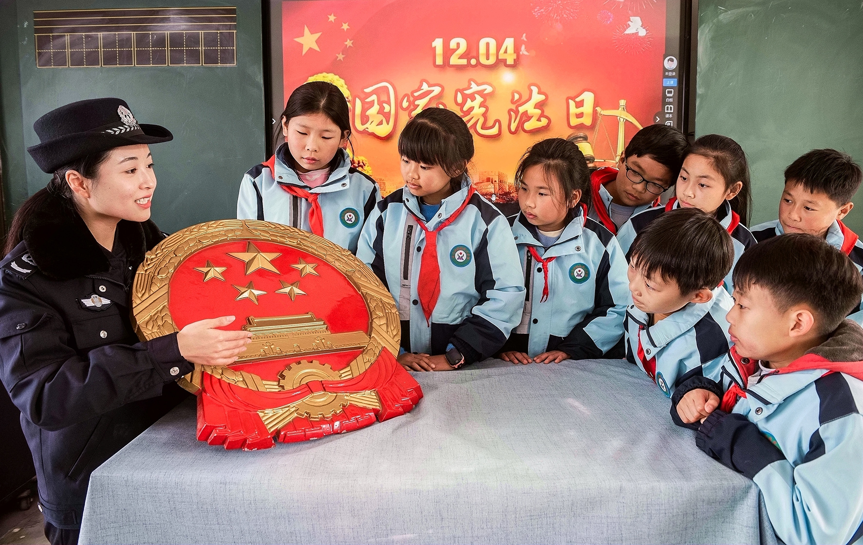 12月4日,山東省滕州市公安局北辛派出所民警為學(xué)生們講解憲法知識。