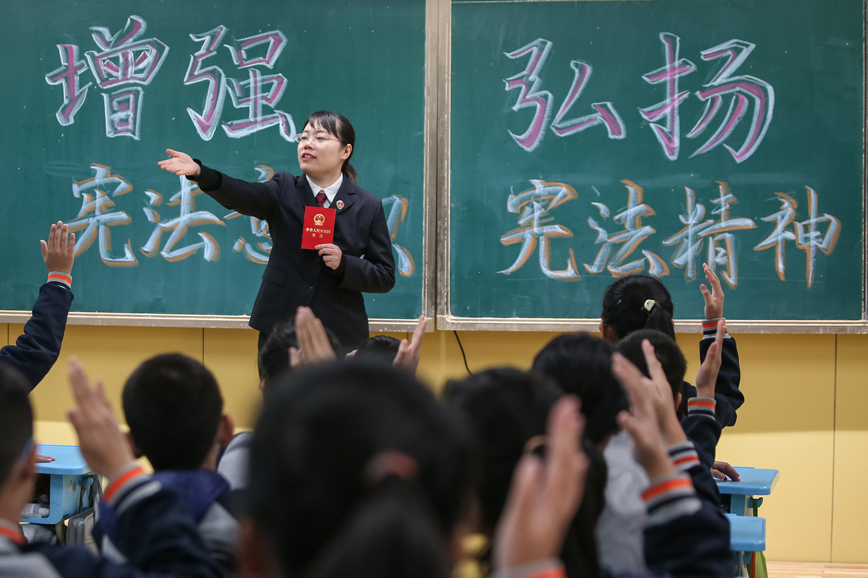 12月4日,陜西省渭南市中級人民法院組織法官走進(jìn)轄區(qū)中小學(xué),開展憲法宣傳進(jìn)校園活動。