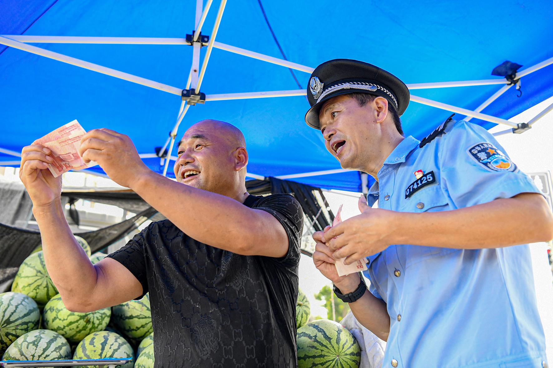 7月24日,安徽省馬鞍山市含山縣公安局環(huán)峰派出所聯(lián)合經(jīng)偵大隊(duì)組織民警開展反假幣宣傳活動(dòng)。