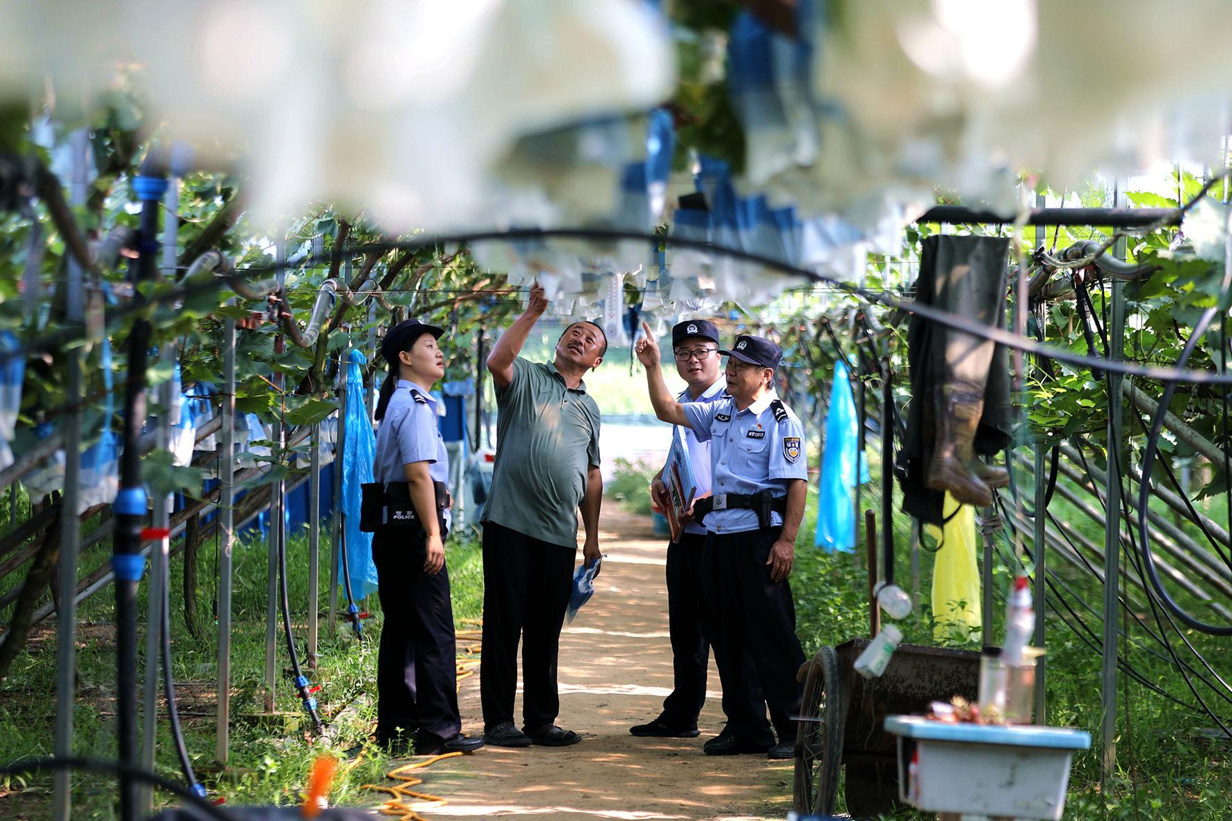 8月8日,安徽省舒城縣公安局五顯派出所民警走進(jìn)轄區(qū)一葡萄種植園,了解葡萄生長、周邊治安等情況,宣傳“夏季行動”相關(guān)知識,做好安全防范。