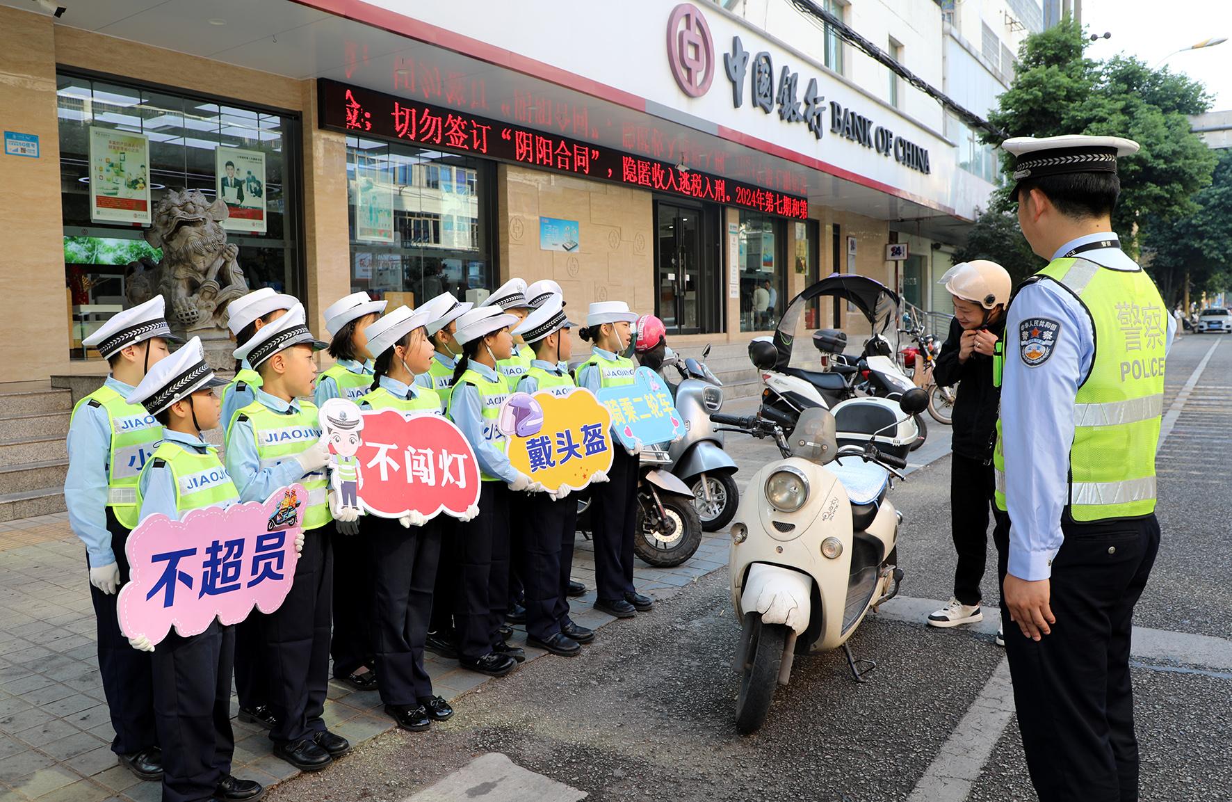 圖為“小交警”們?cè)趯W(xué)校周邊路口勸糾交通違法。