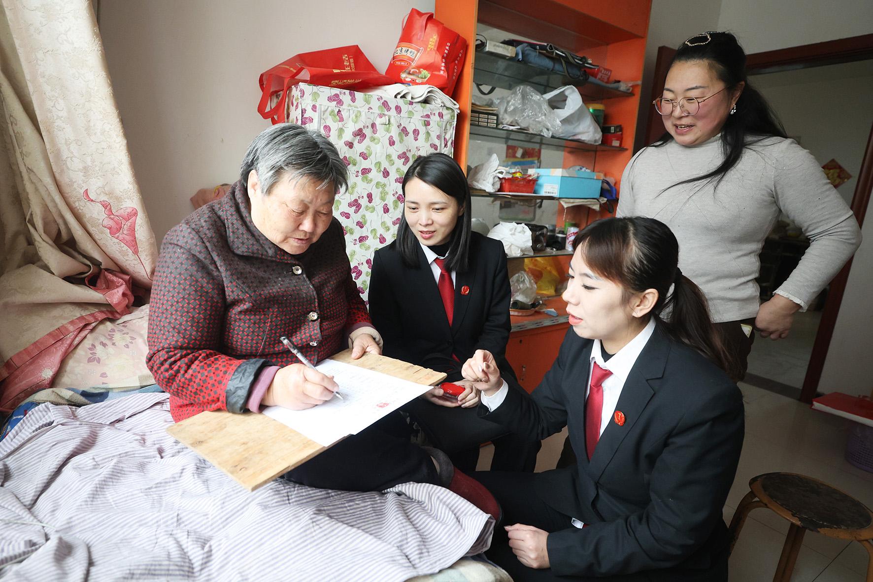 12月25日下午,河南省安陽(yáng)縣人民法院干警冒著嚴(yán)寒來(lái)到高莊鎮(zhèn),上門為因交通事故受傷的魏老太辦理立案和委托手續(xù)。