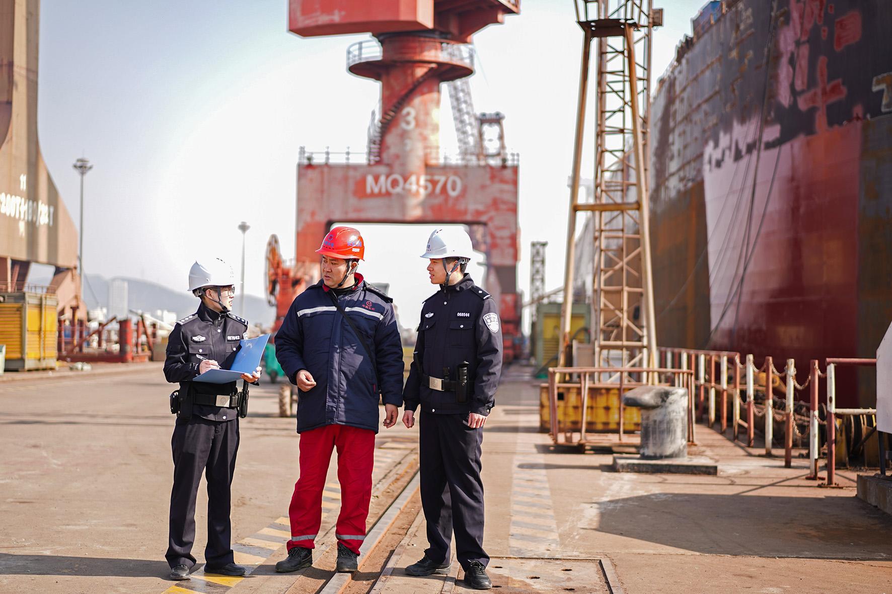1月13日,浙江省岱山縣公安局高亭派出所民警結(jié)合“冬季行動(dòng)”,到轄區(qū)某船舶修造企業(yè)進(jìn)行安全大檢查。