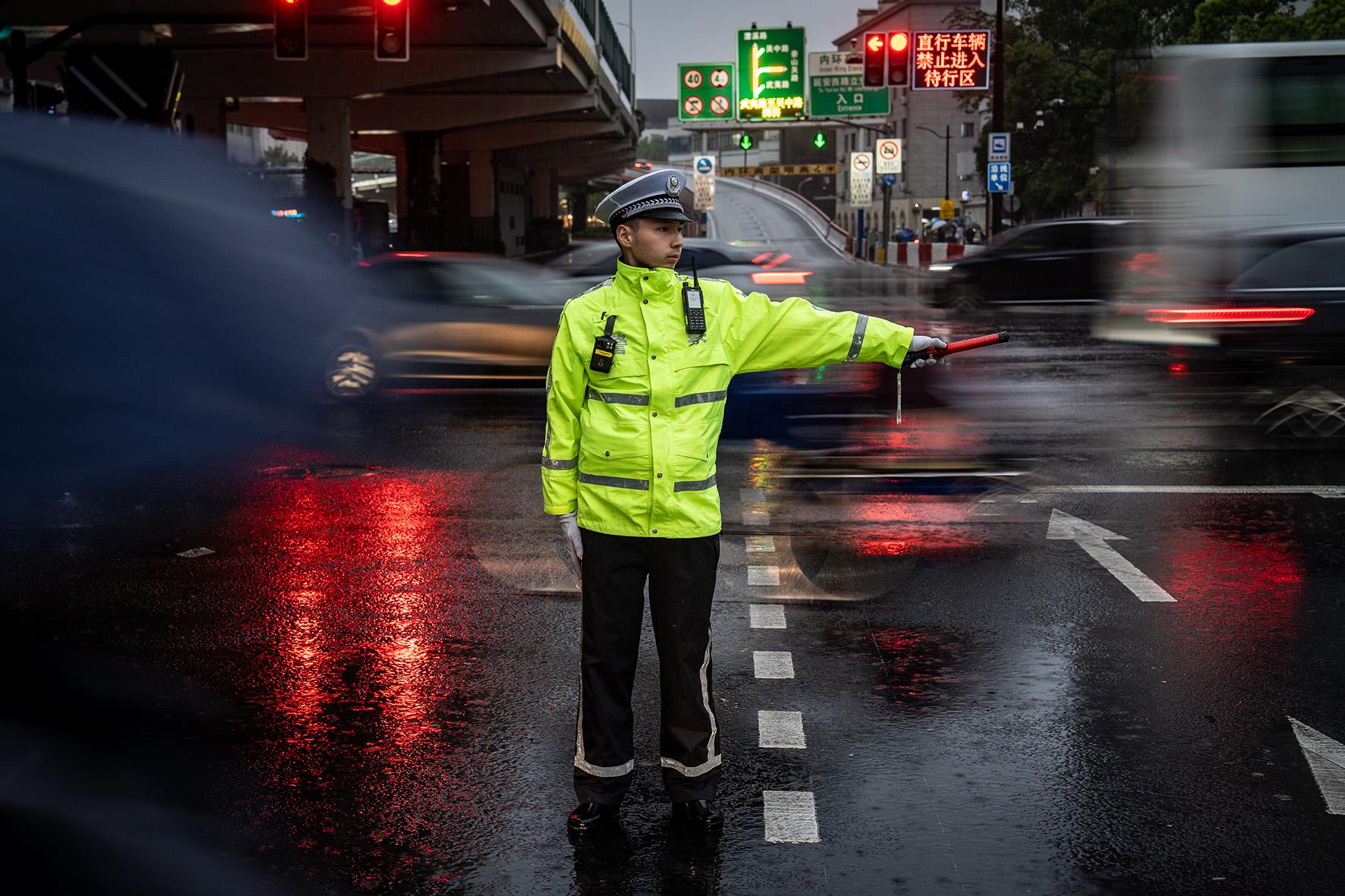 5月8日晚,上海市部分地區(qū)迎來(lái)強(qiáng)降雨。上海市公安局普陀分局交管支隊(duì)三大隊(duì)民警在中山北路金沙江路路口疏導(dǎo)人流。