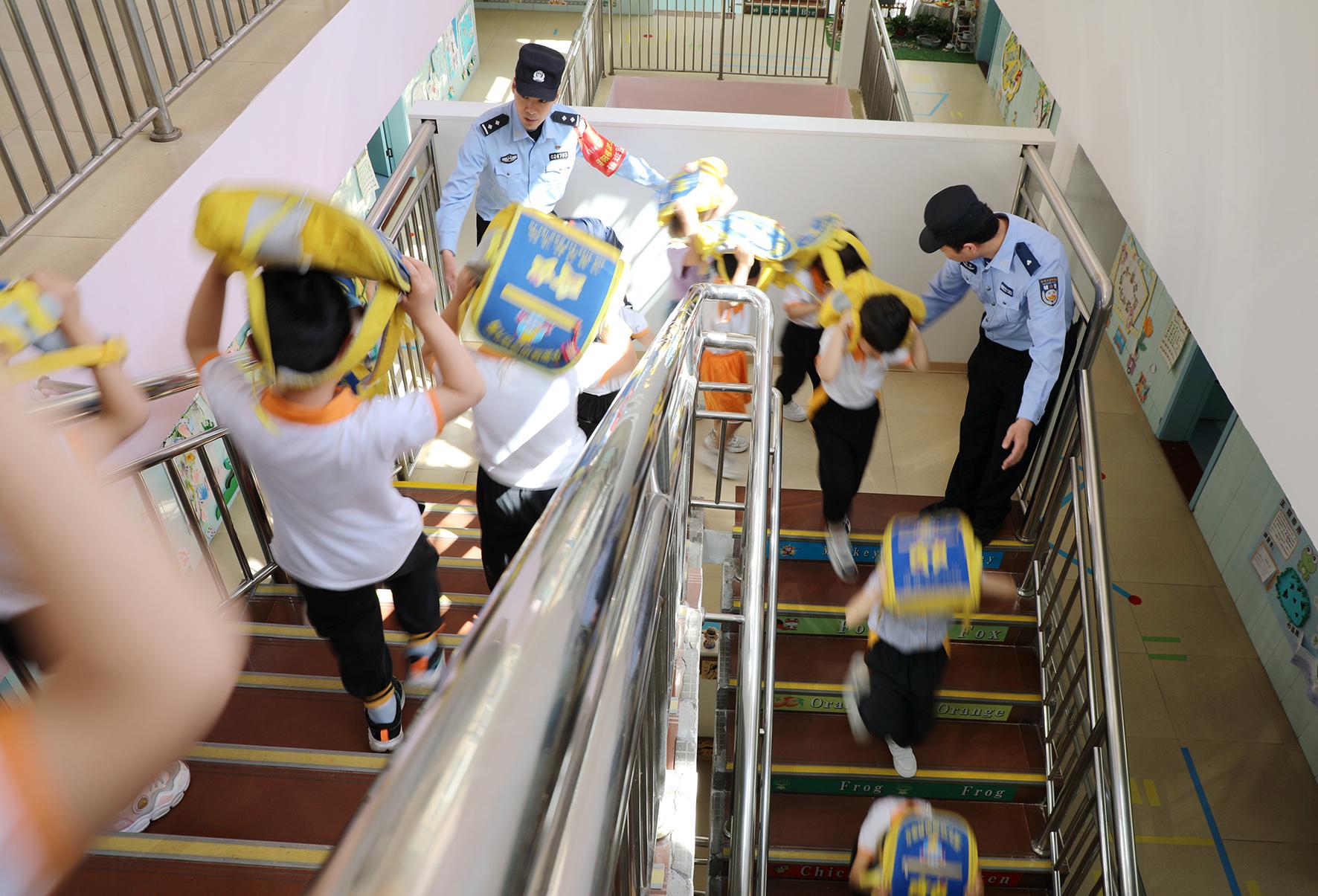 5月12日,安徽省亳州市公安局高新區(qū)分局希夷派出所民警走進轄區(qū)幼兒園,開展防震避險疏散演練。