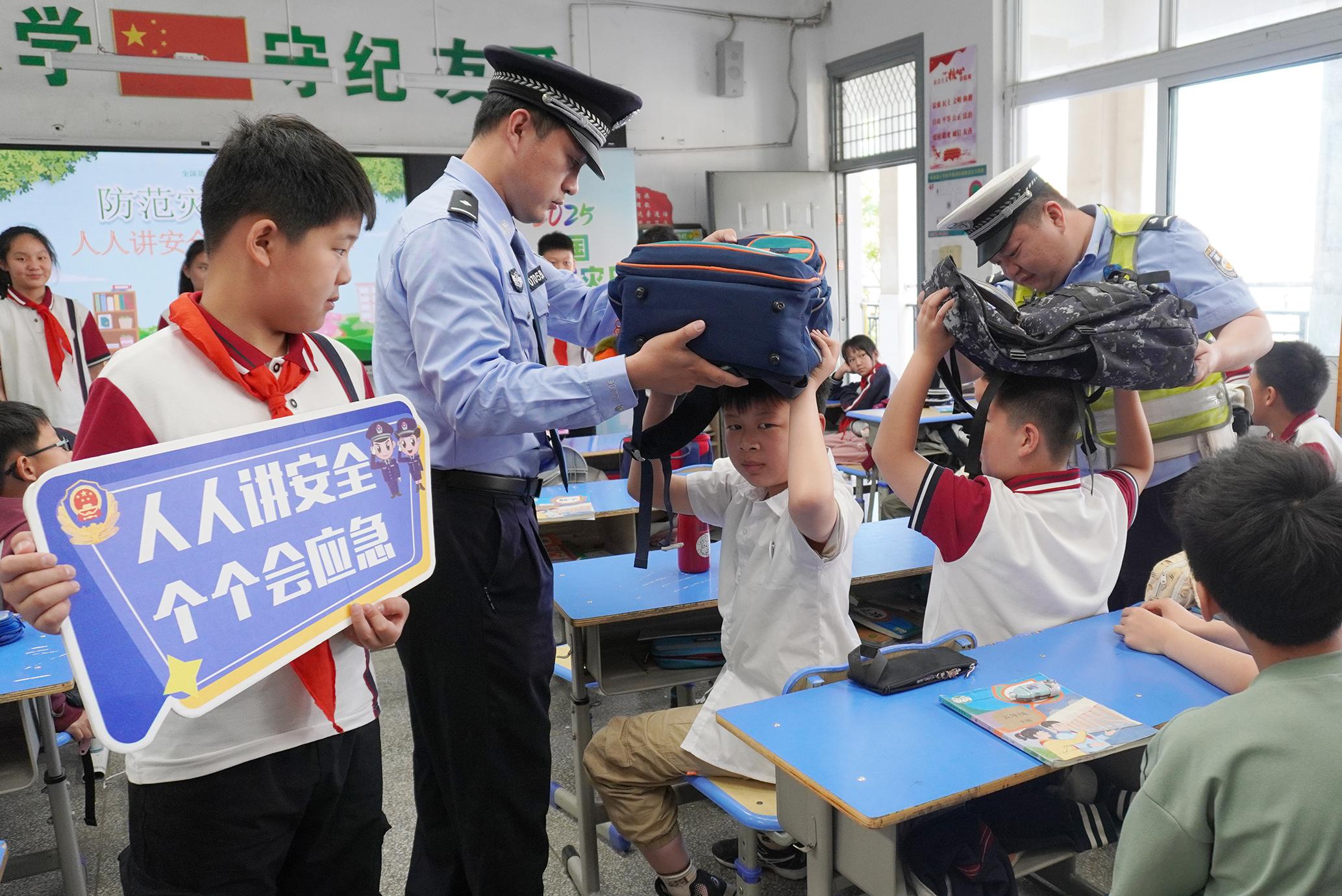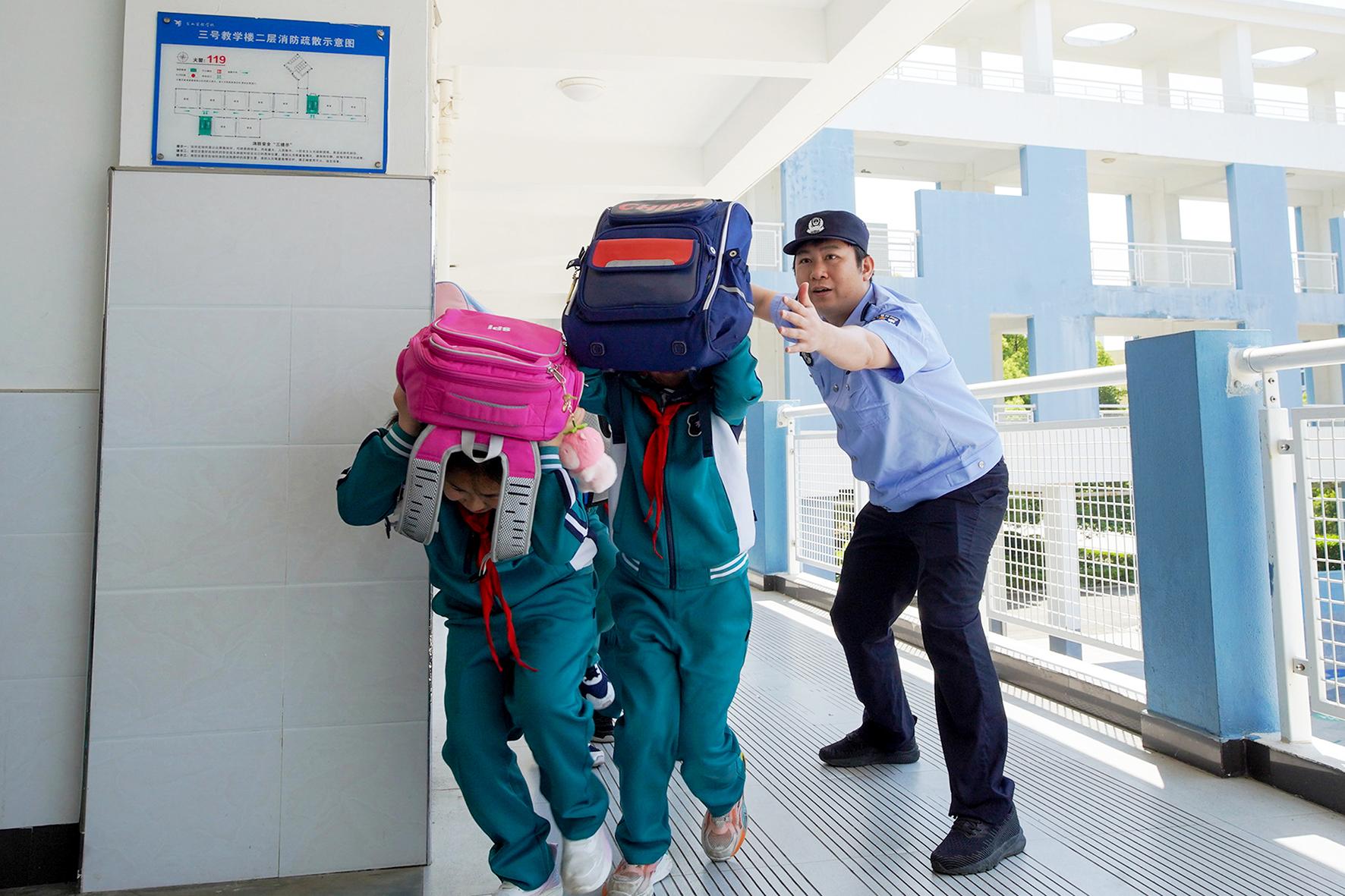 5月12日,安徽省合肥市公安局瑤海分局龍崗派出所民警聯(lián)合合肥義警走進轄區(qū)校園開展防災減災宣傳教育活動。