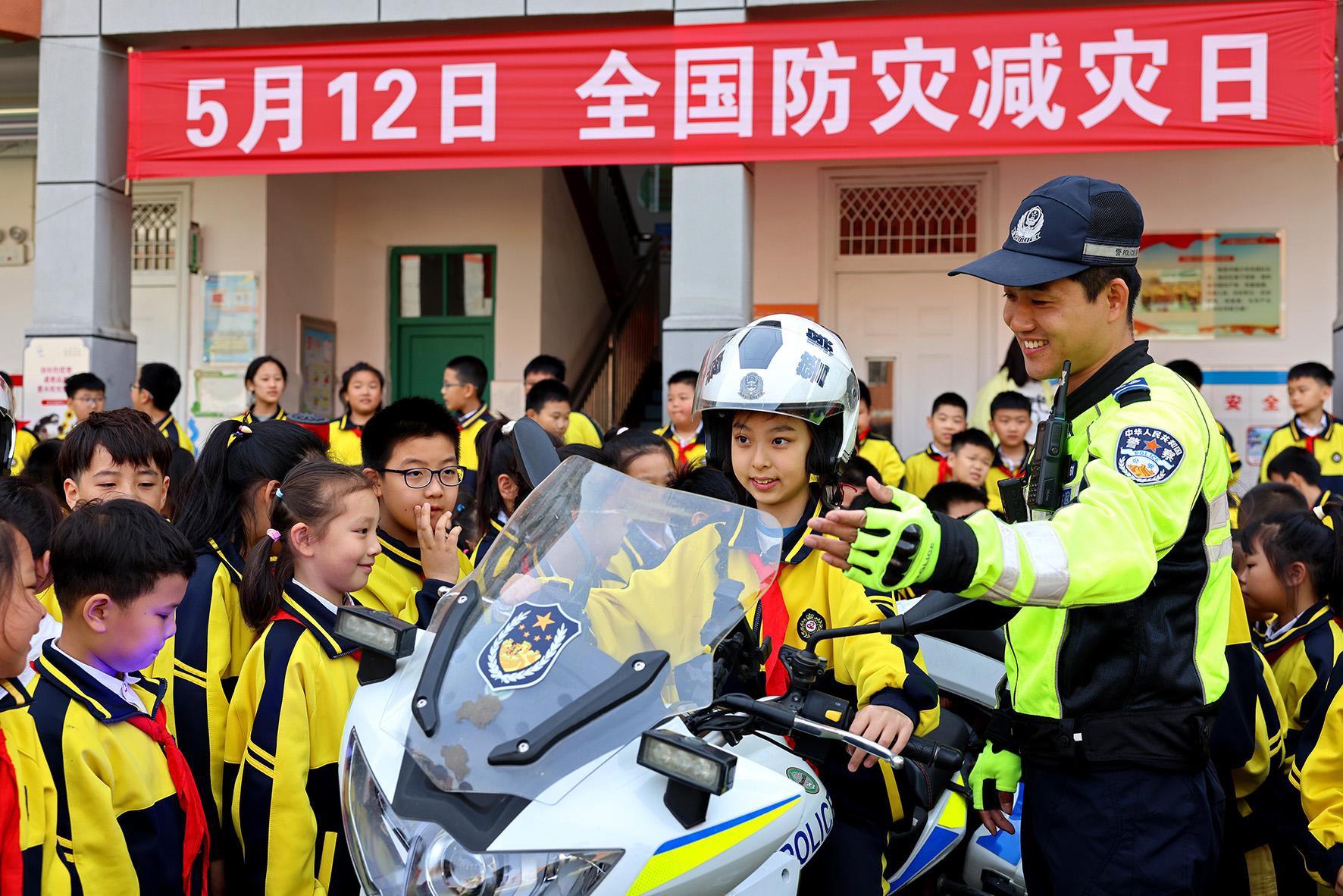 5月12日,山東省棗莊市公安局市中分局交通警察大隊組織民輔警走進校園開展主題宣傳活動,增強學生們防災減災和避險意識,提高遇險防范自救能力。