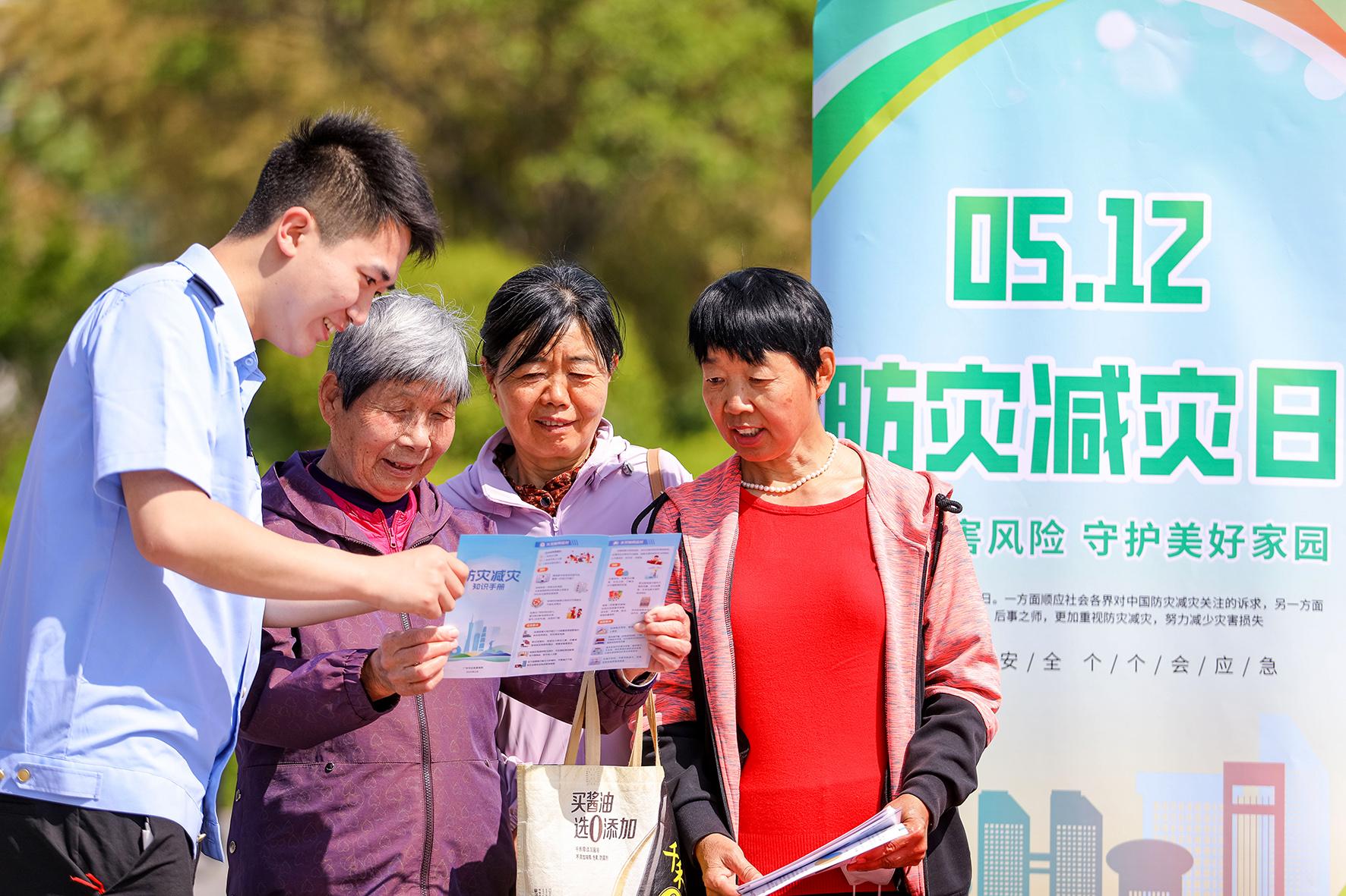 5月12日,在山東省青島市李滄區(qū)李滄文化公園舉辦的“全國防災減災日”集中宣傳活動中,應急工作人員向市民介紹防災減災知識。