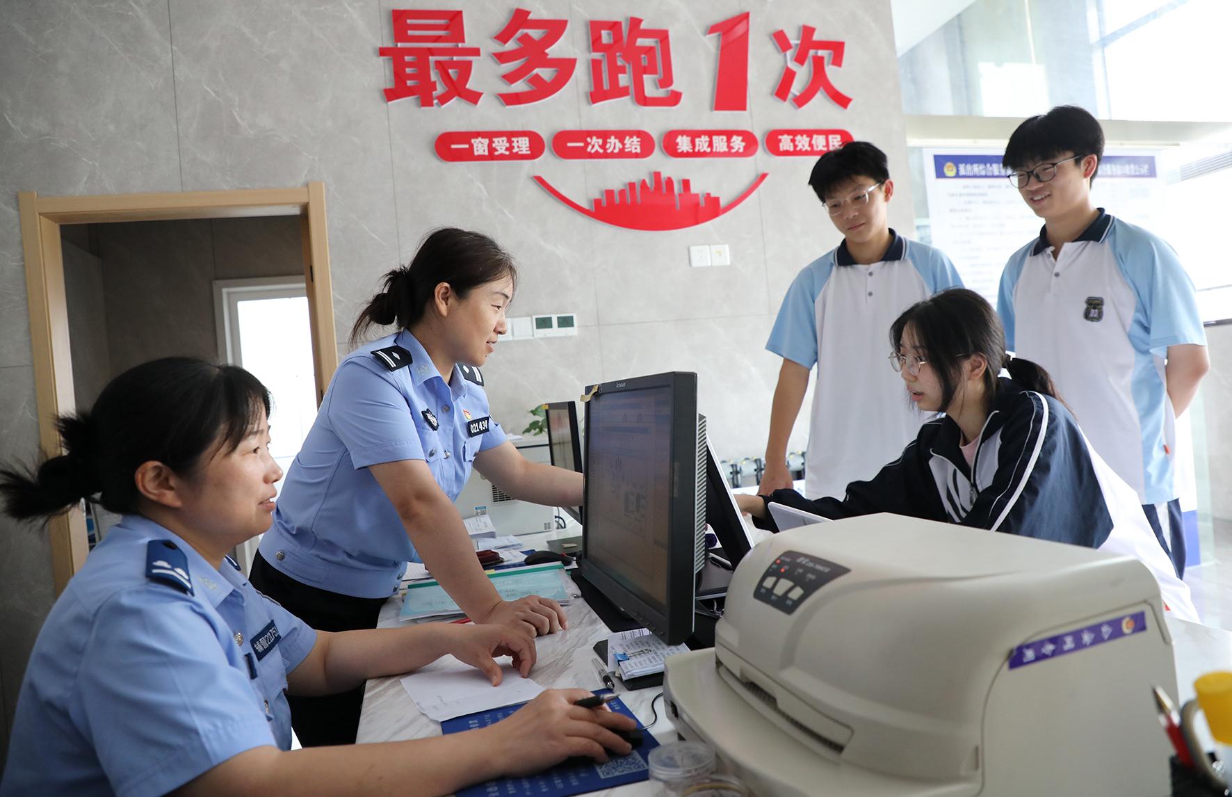 5月20日,江西省九江市公安局濂溪分局劉家塘派出所為考生開設(shè)辦證“綠色通道”,戶籍窗口民警周末和午休時間一律在崗,采取延時、錯時、預(yù)約等方式為學(xué)生辦證提供24小時服務(wù)。