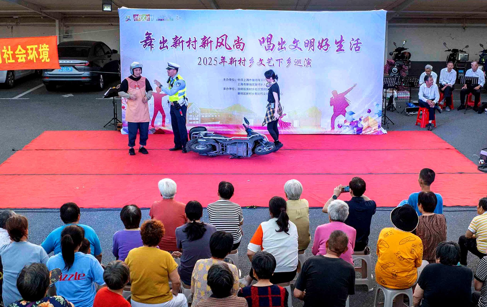 5月20日傍晚,上海市公安局崇明分局交管支隊(duì)民警輔警來(lái)到轄區(qū)新村鄉(xiāng)開(kāi)展“美麗鄉(xiāng)村行”文藝下鄉(xiāng)巡演活動(dòng)。
