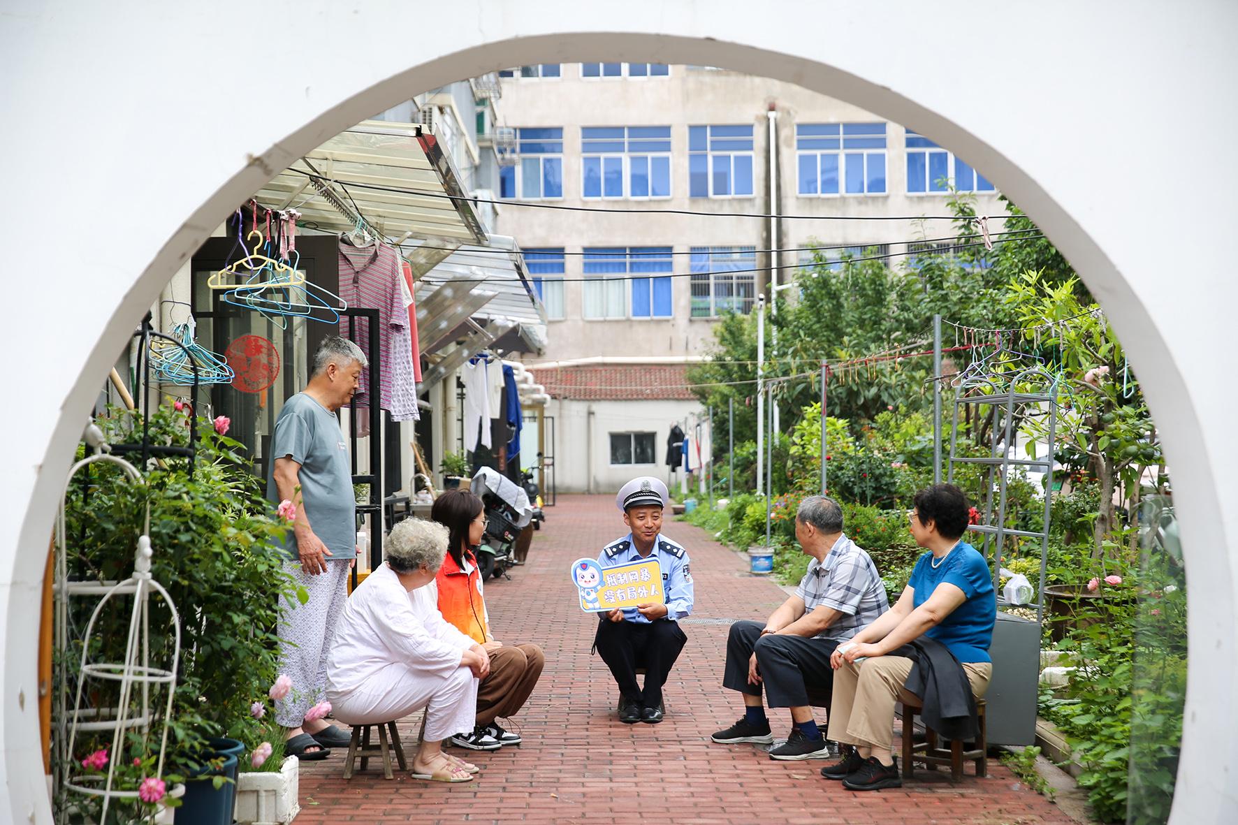 6月9日,江蘇省如皋市公安局民警在如城街道安定社區(qū)向居民開展網(wǎng)絡(luò)舉報和辟謠宣傳。
