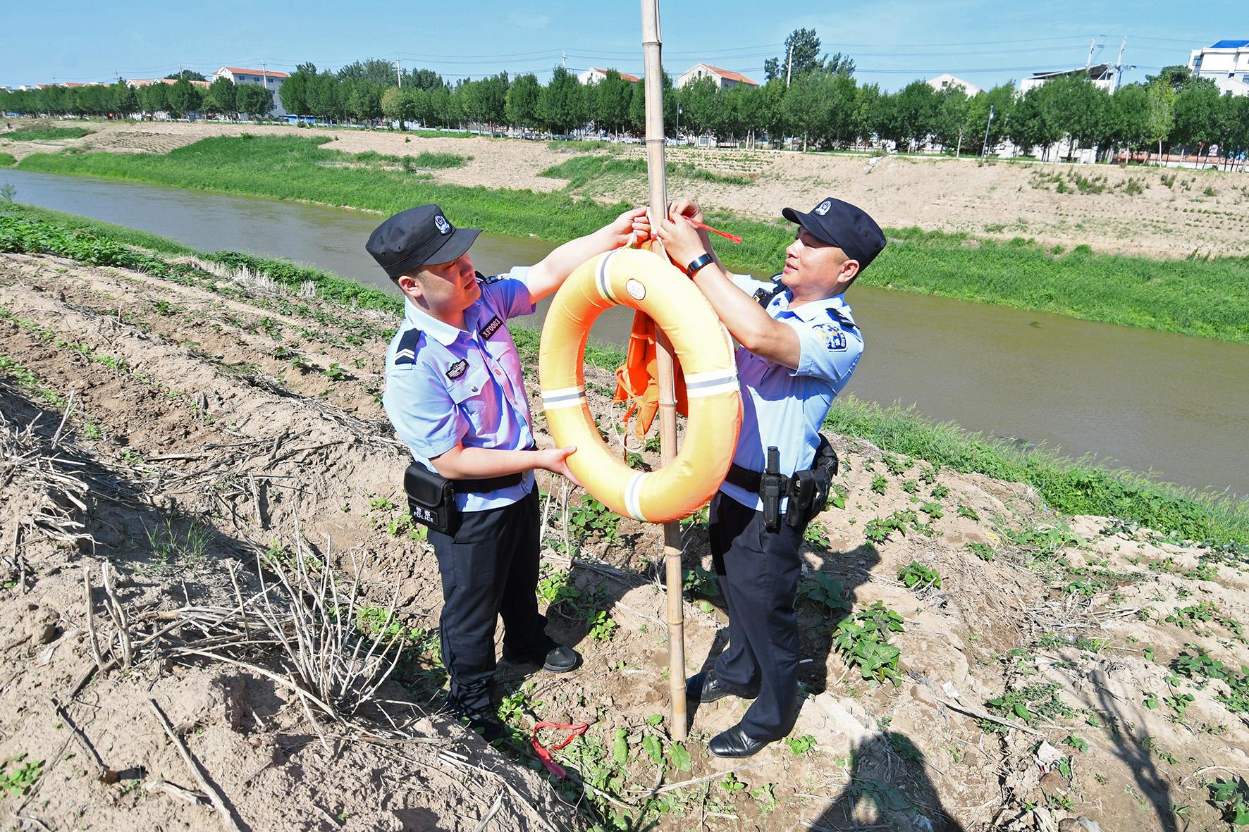 7月3日,河南省浚縣公安局衛(wèi)溪派出所組織民輔警深入轄區(qū)河道、池塘等重點水域開展安全隱患排查,增設(shè)救生圈、救生衣等安全防護設(shè)施,全力織牢防溺水安全網(wǎng)。