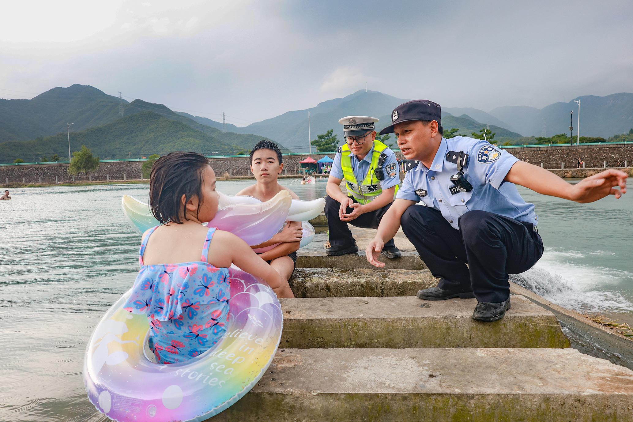 7月14日,浙江省臺(tái)州市三門縣公安局橫渡派出所組織民輔警在重點(diǎn)水域開展防溺水巡邏,向群眾普及防溺水安全知識(shí),全力筑牢夏季防溺水安全網(wǎng)。