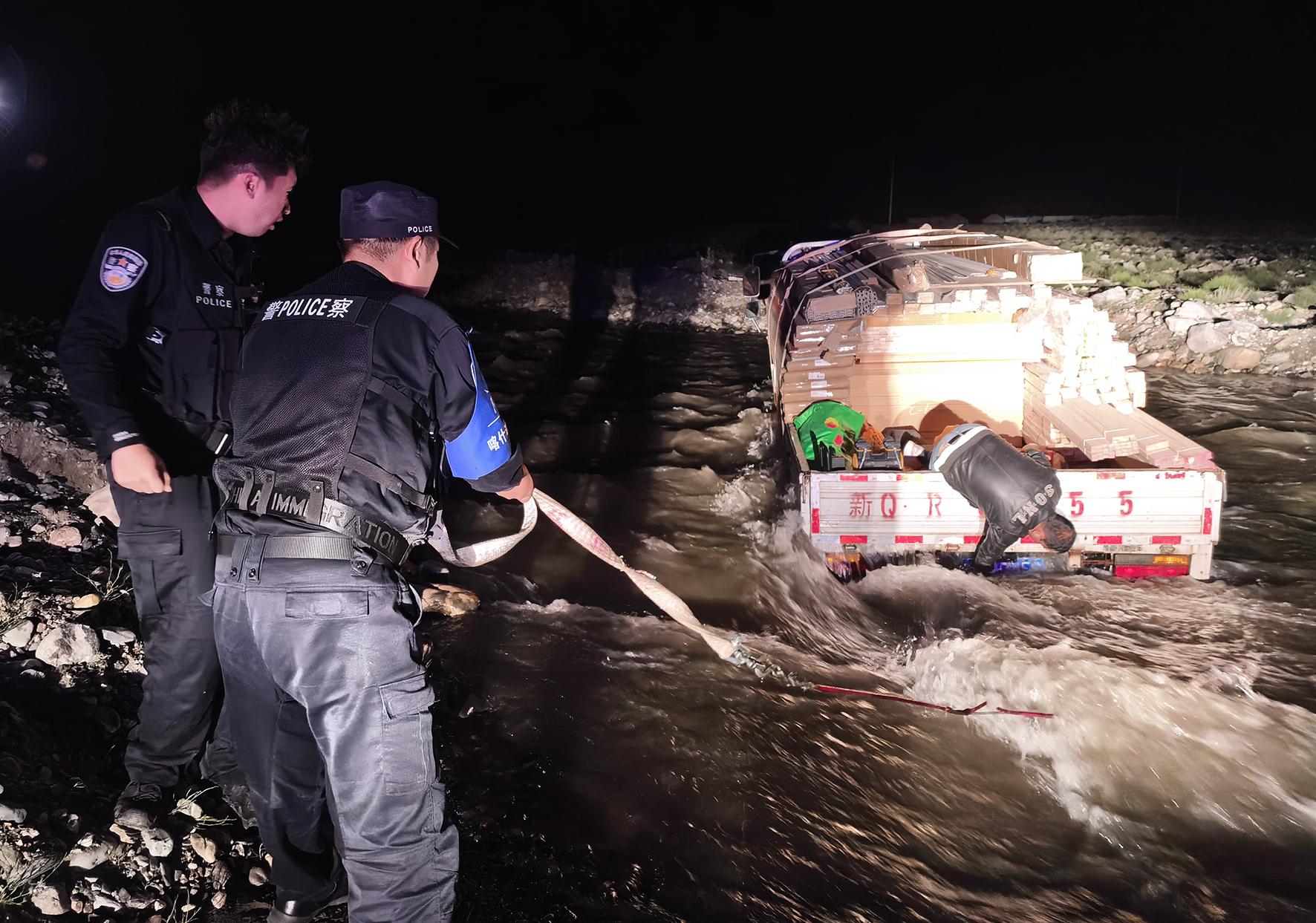 7月30日凌晨1時許,新疆喀什邊境管理支隊達布達爾邊境派出所接群眾報警求助稱:一輛滿載建筑物資的車輛被困河道中央。接警后,達布達爾邊境派出所迅速啟動應(yīng)急預(yù)案,組織民警攜帶救援設(shè)備前往事發(fā)地點展開救援。歷時約2小時,將被困車輛轉(zhuǎn)移至安全區(qū)域。