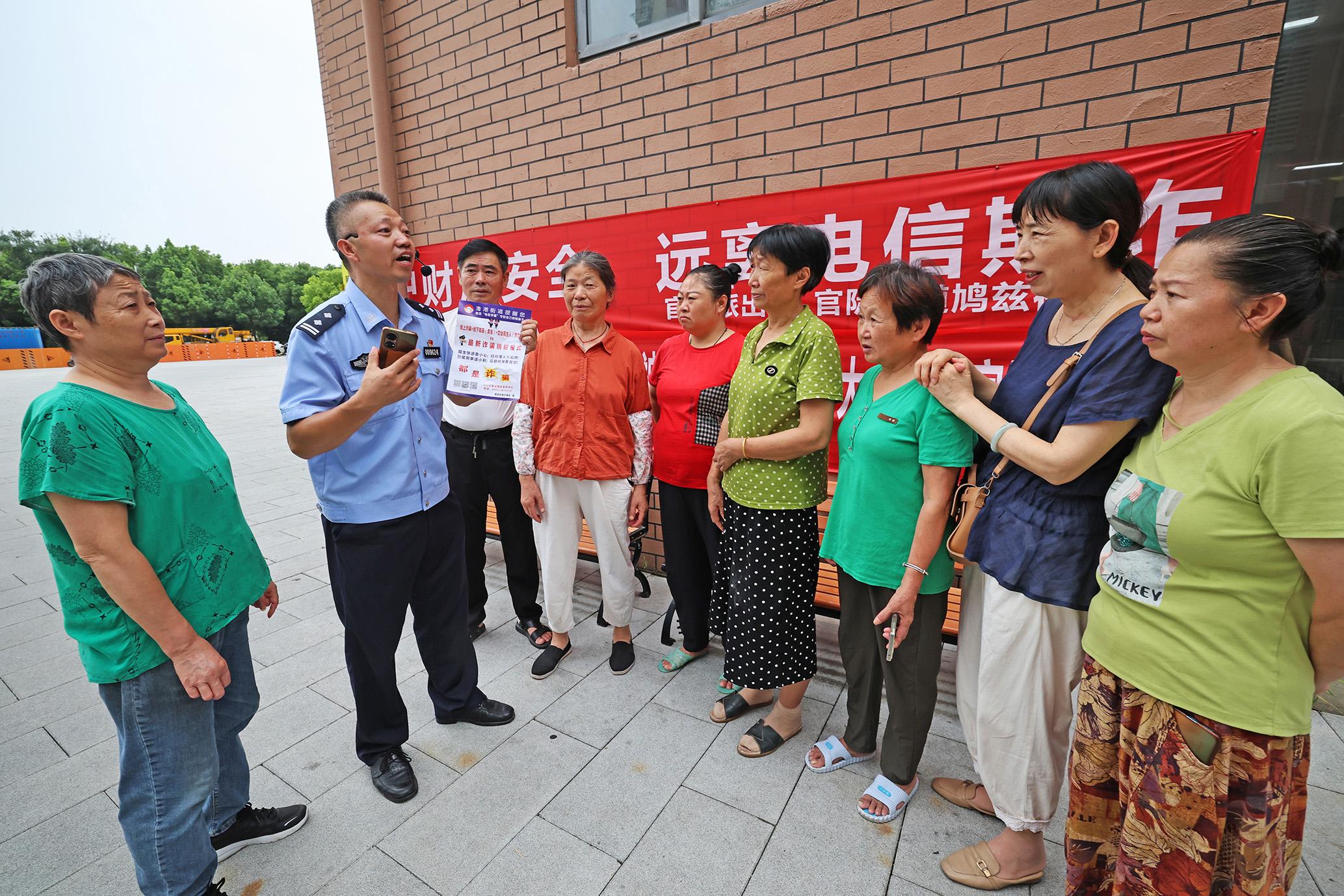 8月10日,安徽省蕪湖市弋江區(qū)高校園區(qū)派出所社區(qū)民警利用周末休息時(shí)間走進(jìn)社區(qū),通過嘮家常、講案例等方式開展反詐宣傳。