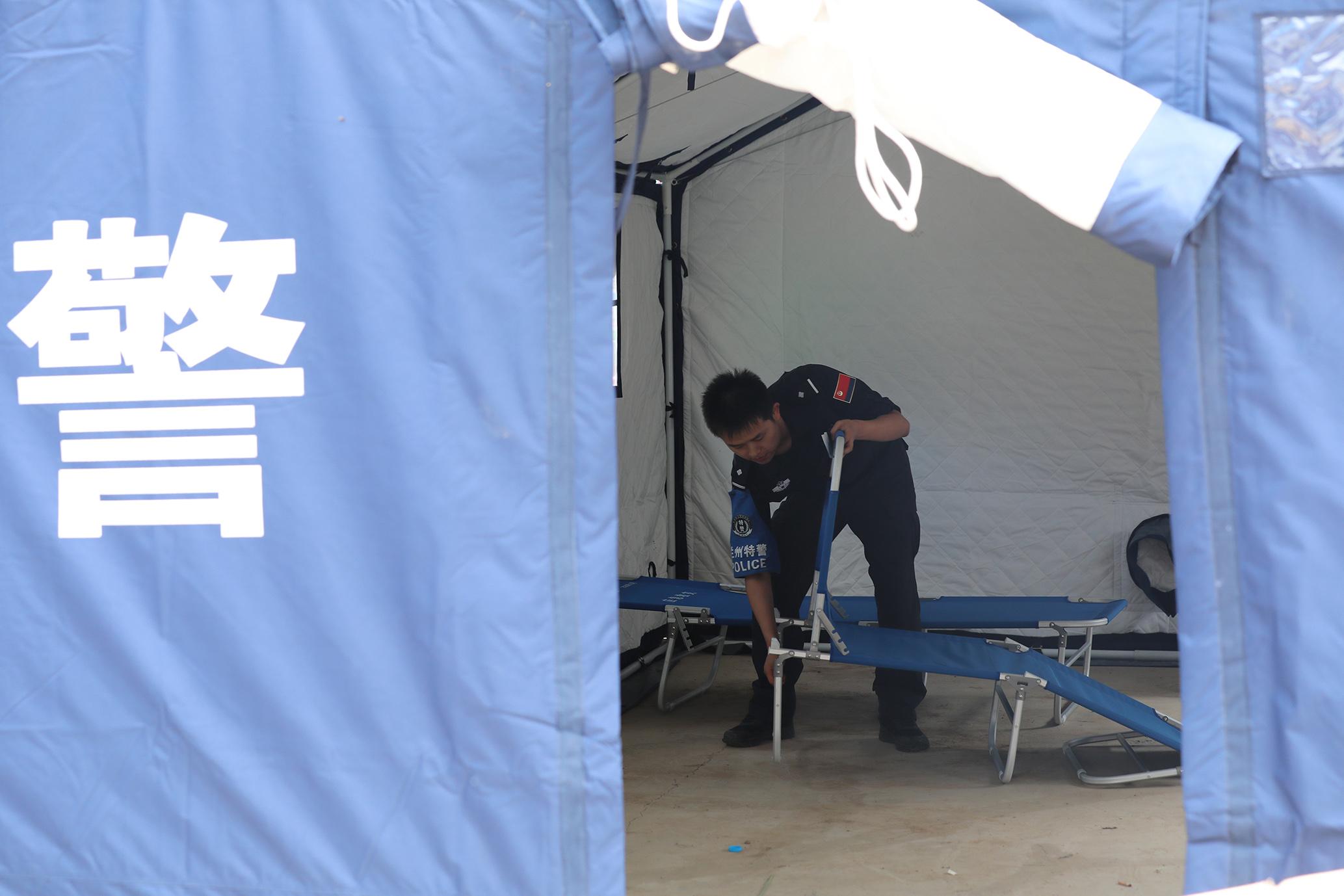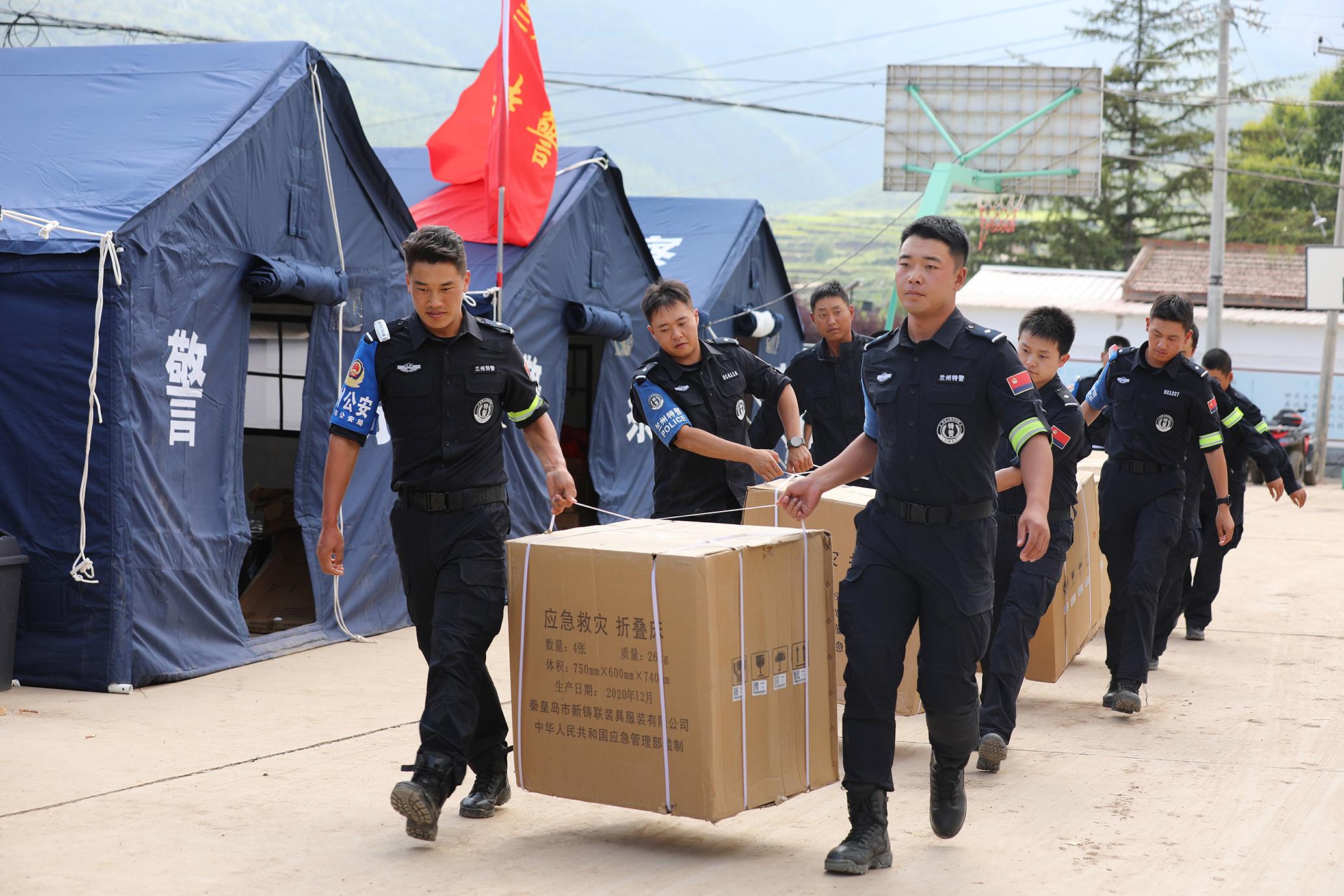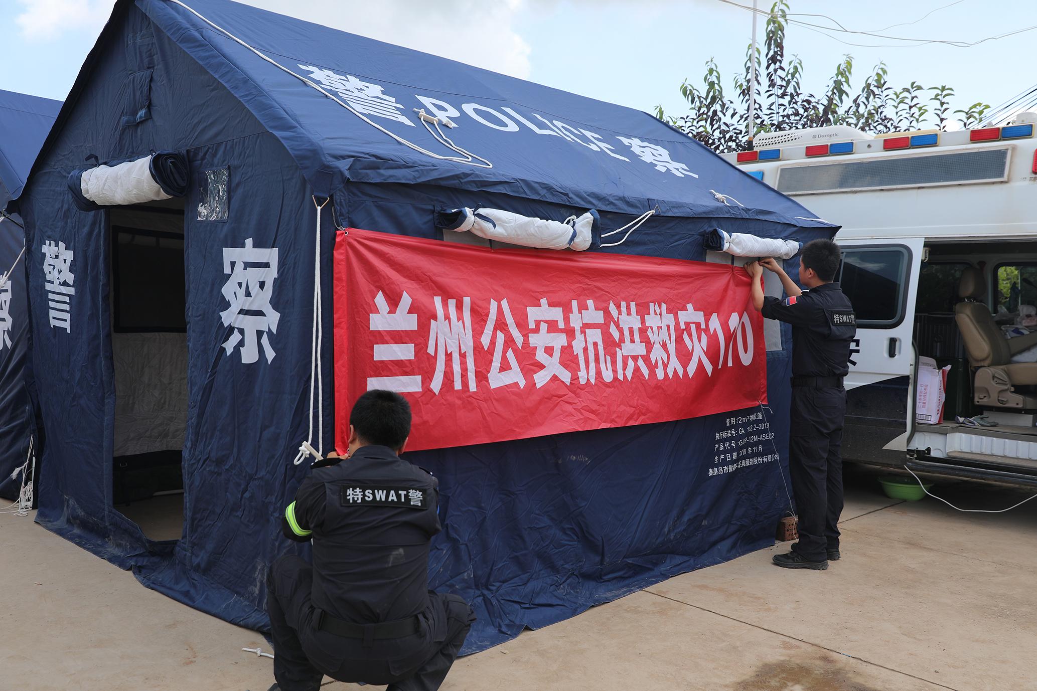 8月12日,甘肅省蘭州市公安局特警支隊(duì)支援榆中洪澇災(zāi)害警力在榆中縣馬坡鄉(xiāng)馬蓮灘村分指揮部屯警點(diǎn)設(shè)立“蘭州公安抗洪救災(zāi)110”,將警力前置,24小時(shí)駐扎在災(zāi)區(qū)前沿,第一時(shí)間開展各項(xiàng)災(zāi)后工作。