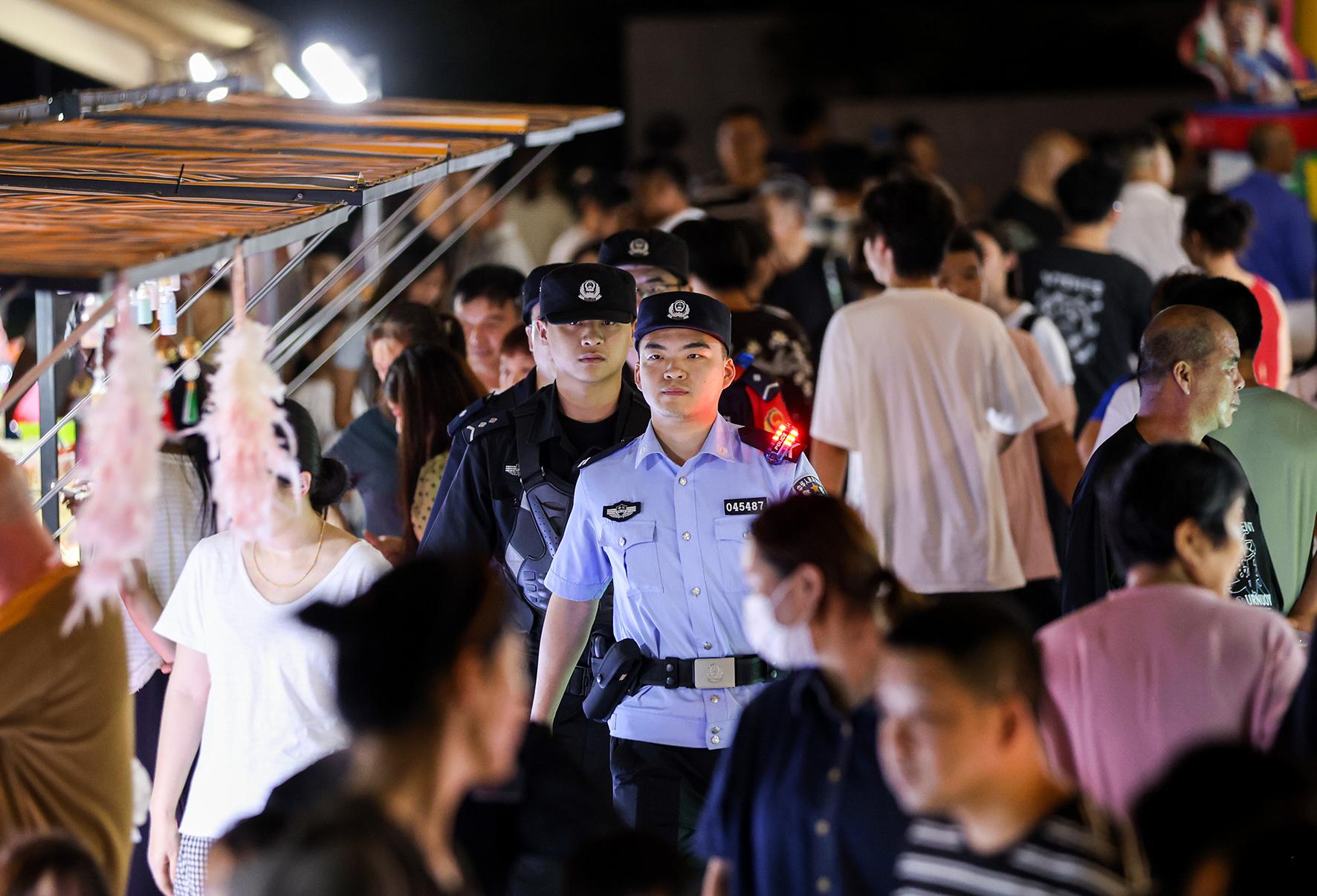 8月18日晚,浙江省嘉興市公安局南湖區(qū)分局新豐派出所結(jié)合夏季行動(dòng),在轄區(qū)內(nèi)商圈、夜市、燒烤攤等人員密集場(chǎng)所,加大巡邏頻次,確?!耙娋臁⒁娋?、見警燈”,有效提升群眾安全感,守護(hù)夏夜煙火氣。