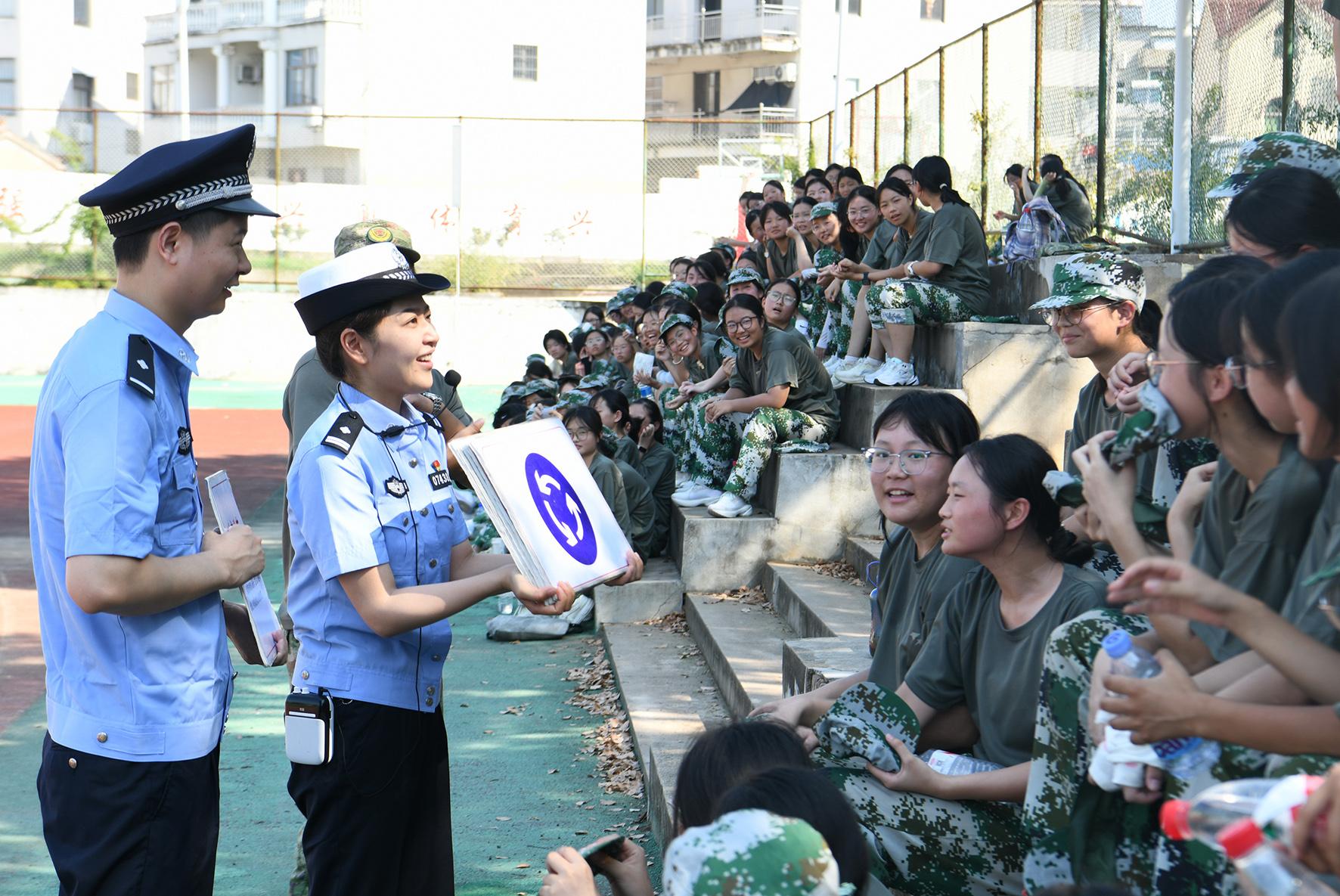 8月19日,安徽省馬鞍山市含山縣公安局交管大隊(duì)聯(lián)合環(huán)峰派出所走進(jìn)含山二中新生軍訓(xùn)場,開展普法宣傳進(jìn)校園活動。