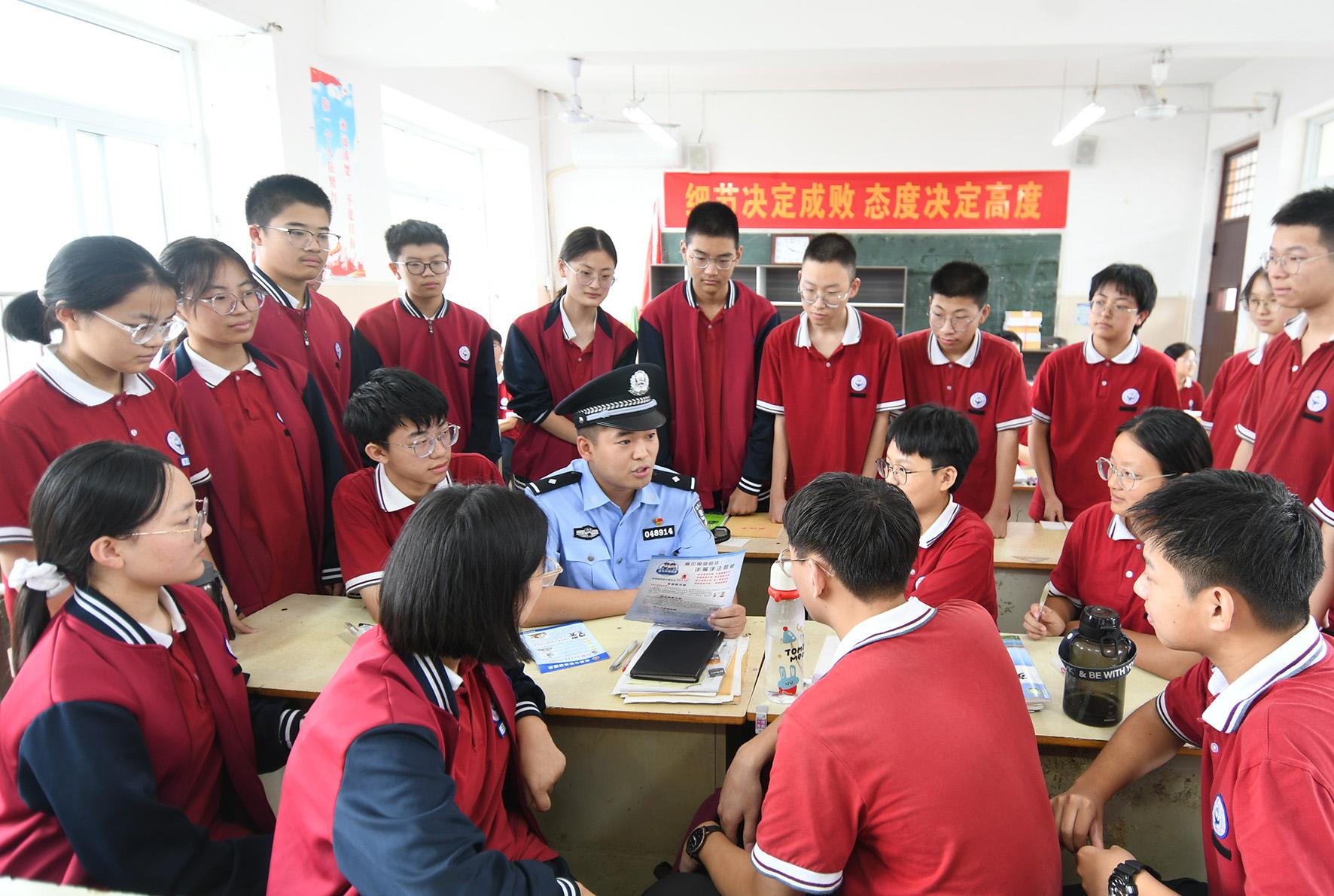 9月5日,河南省浚縣公安局伾山派出所民警走進(jìn)第一高級(jí)中學(xué)通過開設(shè)“平安課堂”,向同學(xué)們宣講安全防范知識(shí)。