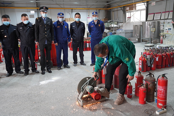3月15日上午,北京市大興區(qū)消防救援支隊(duì)聯(lián)合區(qū)市場監(jiān)督管理局等職能部門,開展了“ 3·15 ”假冒偽劣消防產(chǎn)品集中銷毀活動。工作人員對100余具不合格的滅火器以及達(dá)到使用年限需報廢的滅火器進(jìn)行切割銷毀,防止不法商販回收利用。