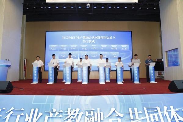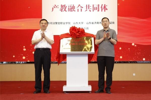 為深化產(chǎn)教融合,加強“政行企?!焙献?,推動公證事業(yè)高質(zhì)量發(fā)展,6月13日,由山東大學(xué)、山東司法警官職業(yè)學(xué)院、山東省濟南市齊魯公證處共同牽頭發(fā)起,全國50多家公證機構(gòu)、高校、企業(yè)、科研機構(gòu)及行業(yè)協(xié)會共同參與的智慧公證行業(yè)產(chǎn)教融合共同體成立大會在山東司法警官職業(yè)學(xué)院濟南校區(qū)舉行。山東省司法廳黨委委員、副廳長何旭與司法部法律職業(yè)資格管理局二級調(diào)研員、全國司法職業(yè)教育教學(xué)指導(dǎo)委員會秘書長呂偉耀為共同體揭牌。