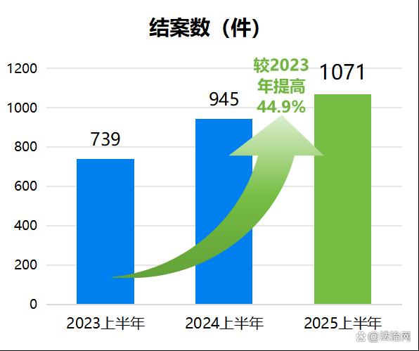 貴仲2025年上半年結案工作展現(xiàn)出強大韌性,結案數達1071件,較2024年上半年的945件增長13.3%,與2023年上半年的739件結案量相比,增幅高達44.9%,結案數量呈現(xiàn)較大幅度的增長,仲裁效率顯著提升。