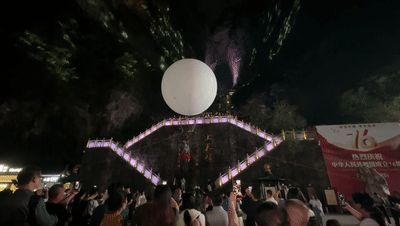 在湖南省張家界天門(mén)山景區(qū),國(guó)慶假期期間,這里每晚都會(huì)上演一場(chǎng)山水民俗視覺(jué)盛宴,令現(xiàn)場(chǎng)觀眾贊不絕口。