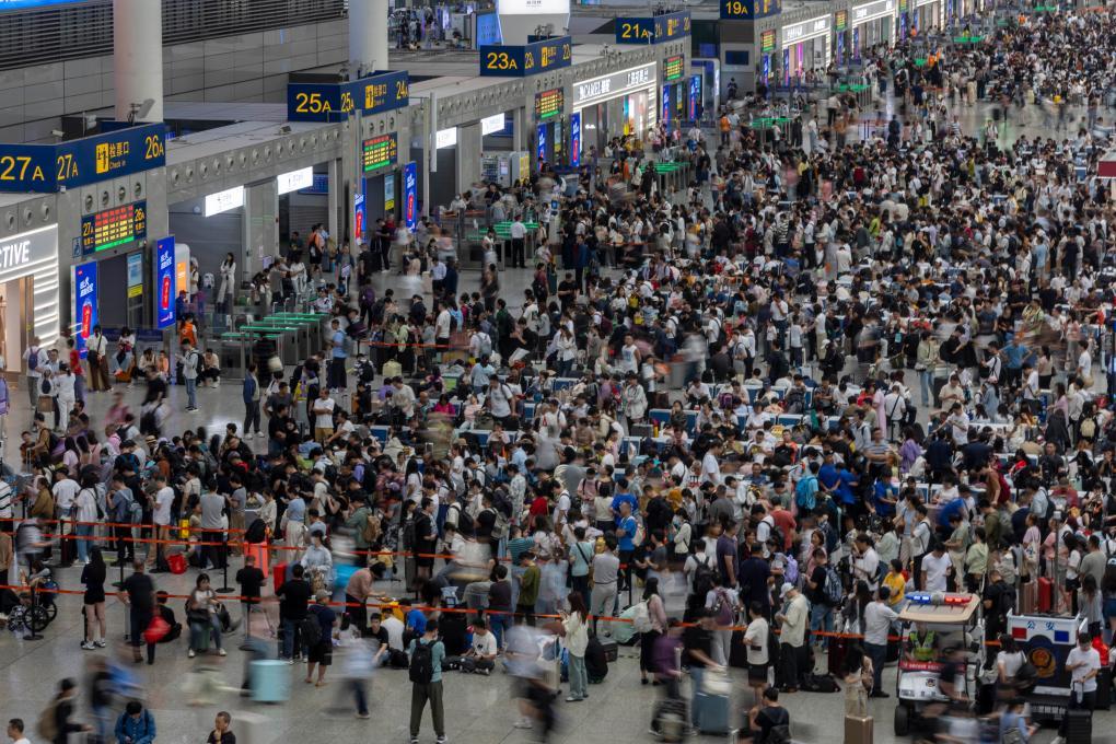 2025年10月1日,旅客在上海虹橋站候車(chē)大廳候車(chē)。當(dāng)日是國(guó)慶假期第一天,各地迎來(lái)出行高峰。新華社記者 王翔 攝