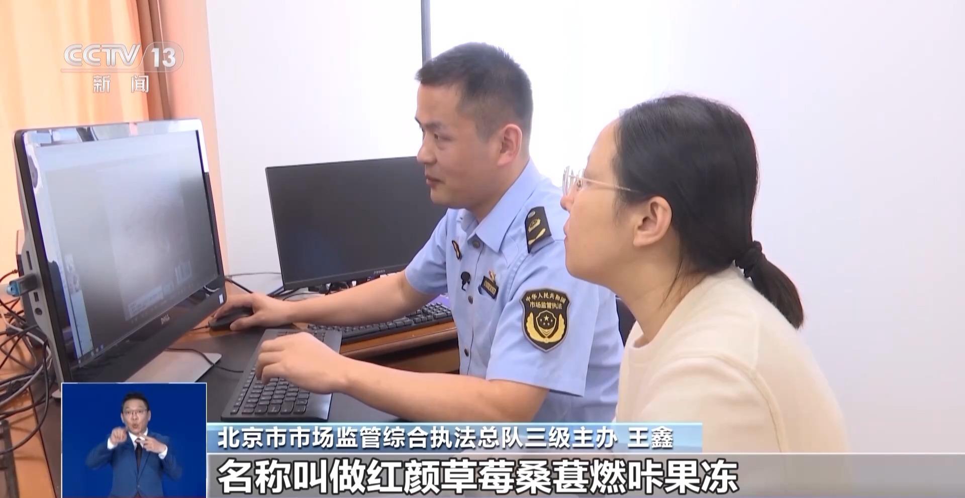 北京市市場(chǎng)監(jiān)管綜合執(zhí)法總隊(duì)三級(jí)主辦 王鑫:我們可以看到這款產(chǎn)品的名稱叫作紅顏草莓桑葚燃咔果凍,它有食品生產(chǎn)許可證的編號(hào),沒有保健食品的藍(lán)帽子標(biāo)志,也沒有藥品的生產(chǎn)許可證,它只是一款普通的食品。
