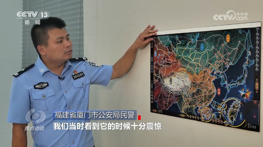 福建省廈門(mén)市公安局民警:“這款桌游我們看到的時(shí)候十分震驚,它把整個(gè)中華大地,長(zhǎng)城以外標(biāo)注為‘蒙古’,把新疆及西北地區(qū)標(biāo)注為‘突厥’,把西南地區(qū)標(biāo)注為‘大藏’,山海關(guān)以外稱為‘滿洲’。它不僅把中華大地蓄意割裂,而且演繹了各種境外分裂勢(shì)力圍剿‘紅軍’,比如‘8月15日殺共匪’。類似這樣的桌游,多數(shù)都是(臺(tái)灣)青少年在玩,極大扭曲青少年的思想認(rèn)知,體現(xiàn)了極端的分裂思想。”