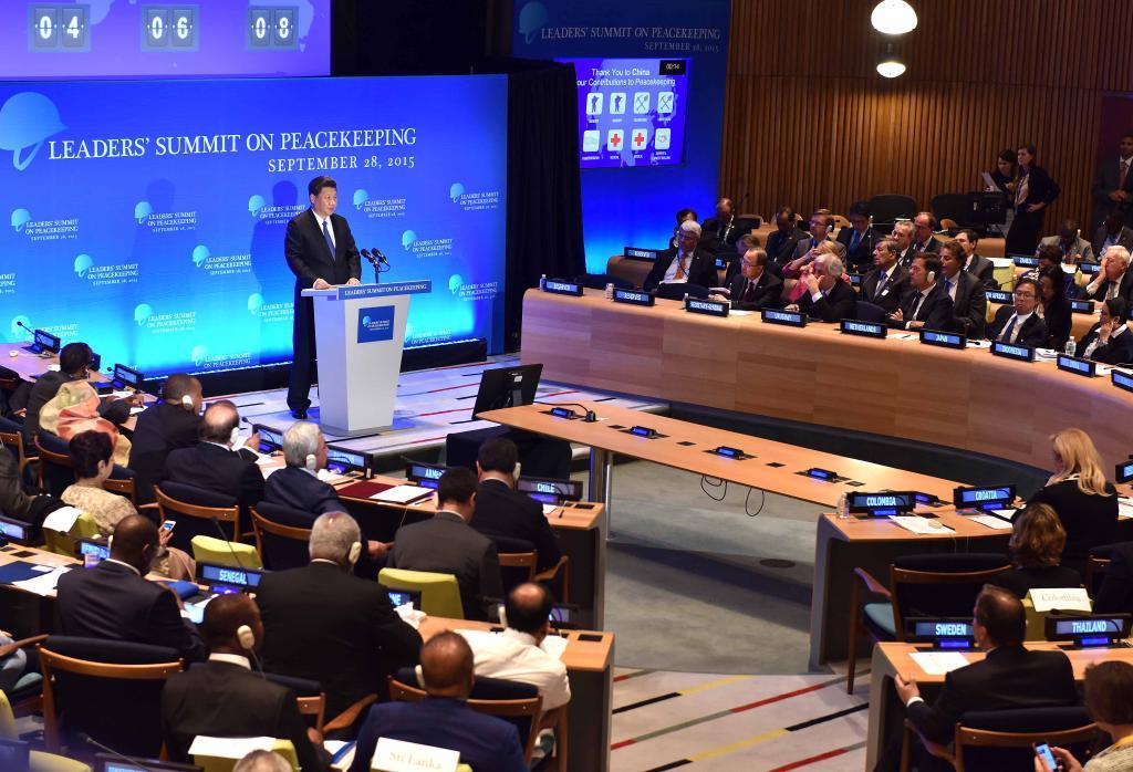 ??2015年9月,習(xí)近平總書記在紐約聯(lián)合國總部出席聯(lián)合國維和峰會并發(fā)表講話。新華社記者 李濤 攝