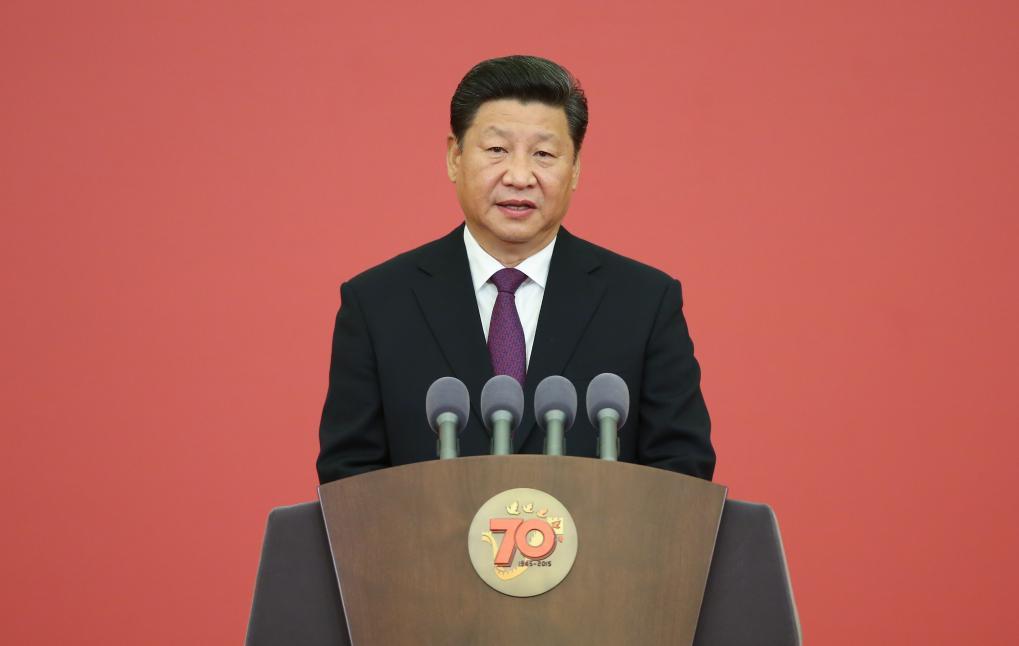 ??2015年9月,中國人民抗日戰(zhàn)爭勝利70周年紀(jì)念章頒發(fā)儀式在北京人民大會堂隆重舉行。習(xí)近平總書記發(fā)表重要講話。新華社記者 龐興雷 攝