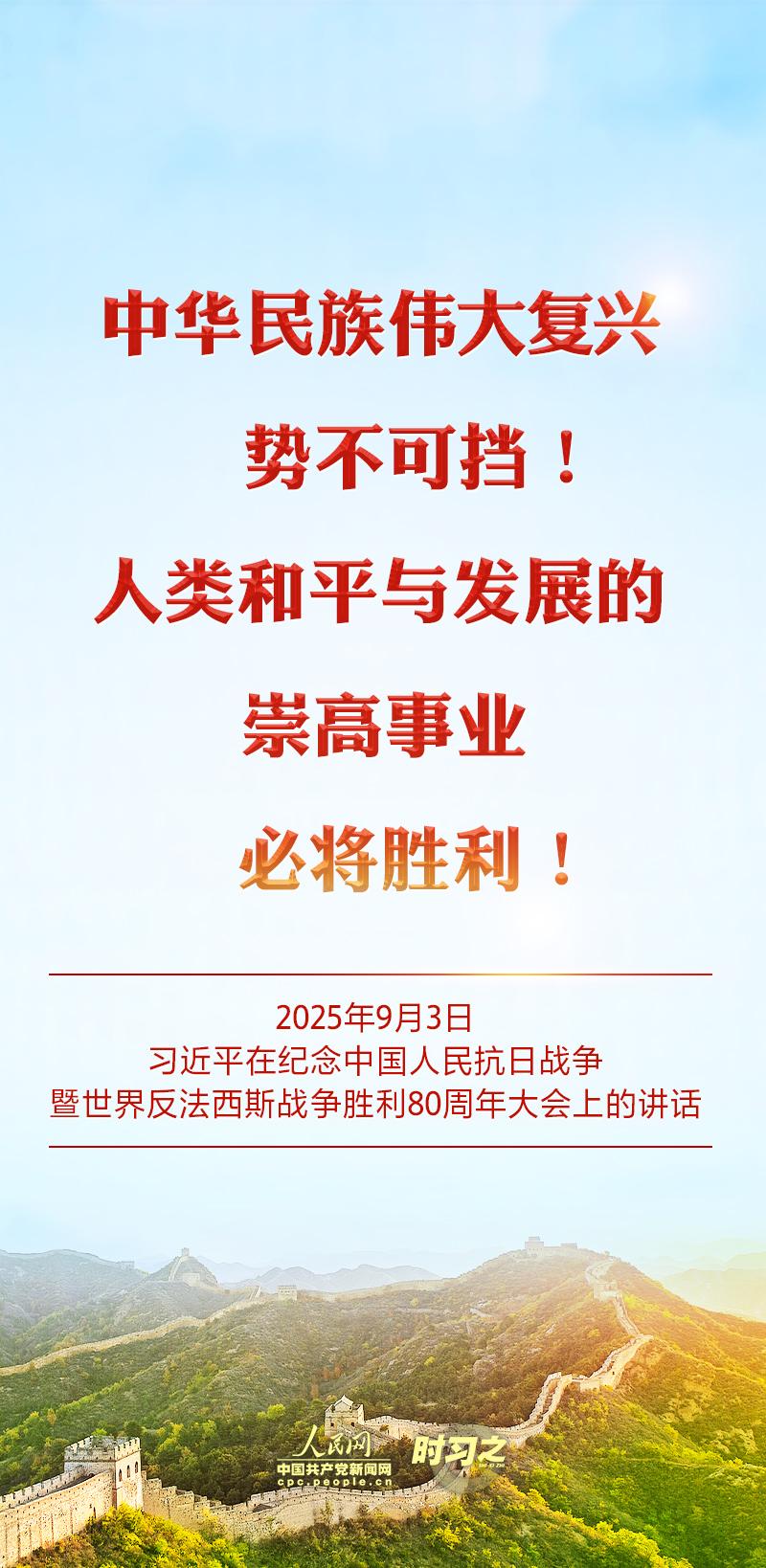 2025年9月3日,中共中央總書記、國家主席、中央軍委主席習(xí)近平在紀(jì)念中國人民抗日戰(zhàn)爭暨世界反法西斯戰(zhàn)爭勝利80周年大會上的莊嚴(yán)宣示,道出了億萬人民的心聲。