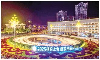 圖為位于天津站后廣場(chǎng)的“2025相約上合 綻放津彩”標(biāo)識(shí)。 新華社記者 趙子碩 攝