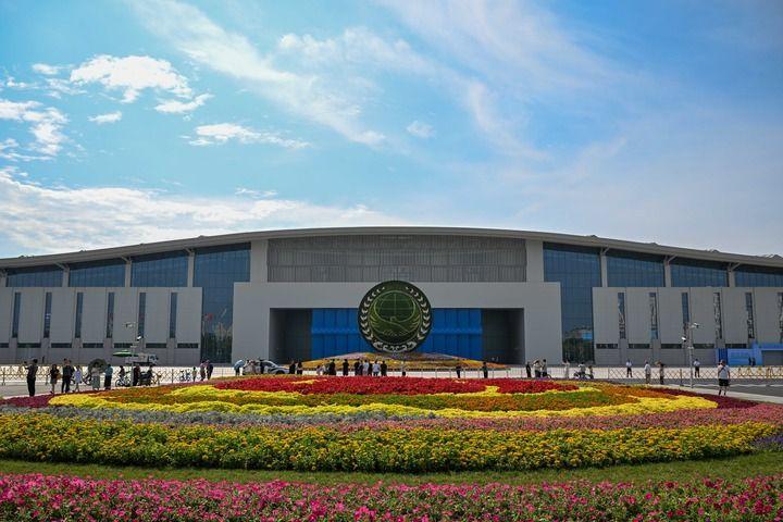 這是2025年9月1日拍攝的天津梅江會展中心外的花壇。新華社記者 孫凡越 攝