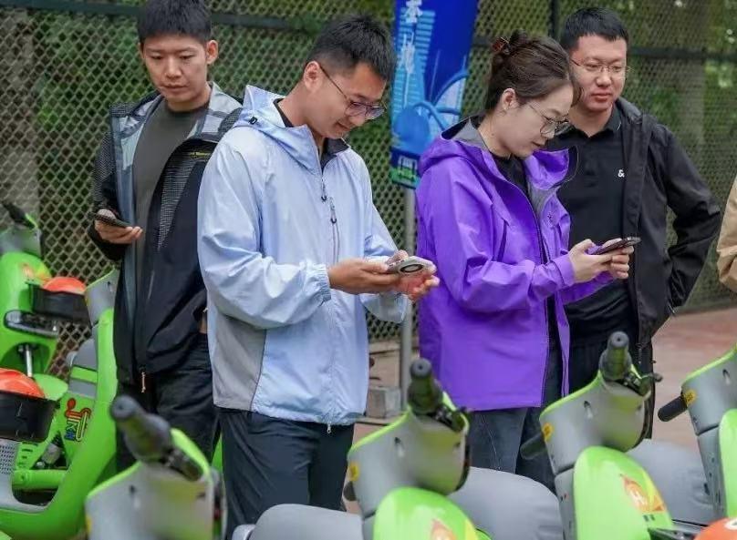 在內蒙古自治區(qū)鄂爾多斯市康巴什街頭,市民掃碼體驗“氫個蛋”共享單車。(受訪者供圖)