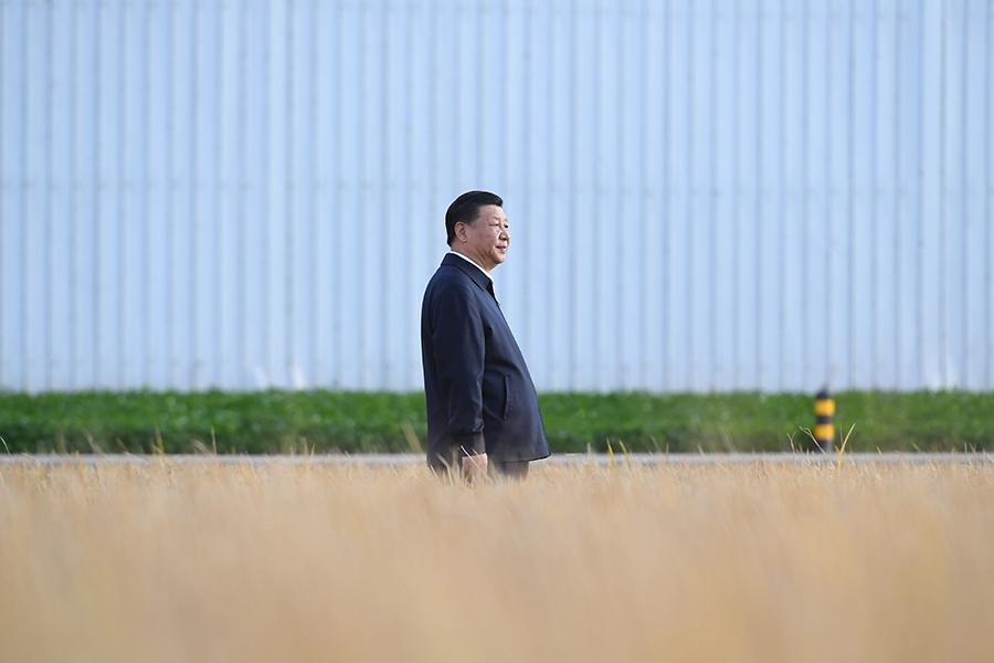 2018年9月25日,中共中央總書記、國家主席、中央軍委主席習近平抵達黑龍江省開始考察。這是習近平在黑龍江農(nóng)墾建三江管理局了解糧食生產(chǎn)和收獲情況。新華社記者 燕雁 攝
